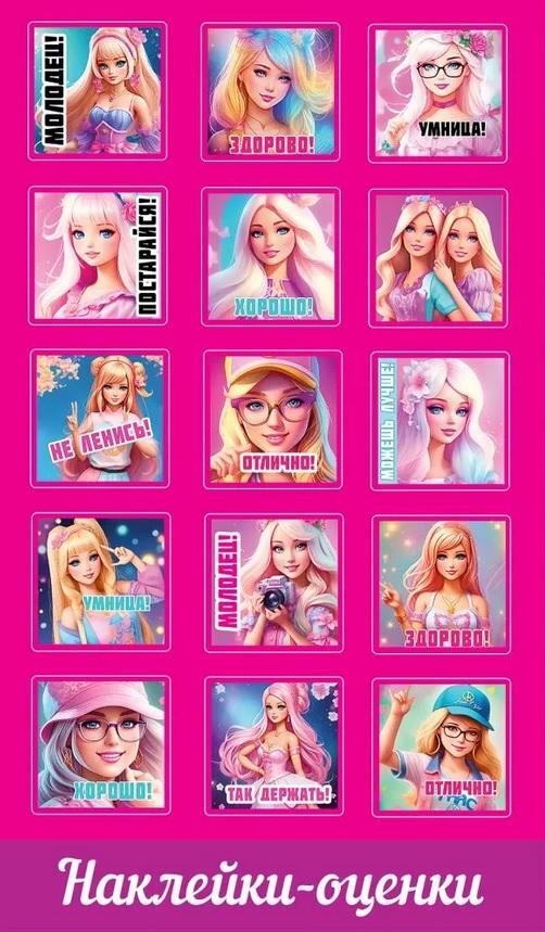 Наклейки-оценки "Барбики", мотивационные, розовый фон, 50 штук