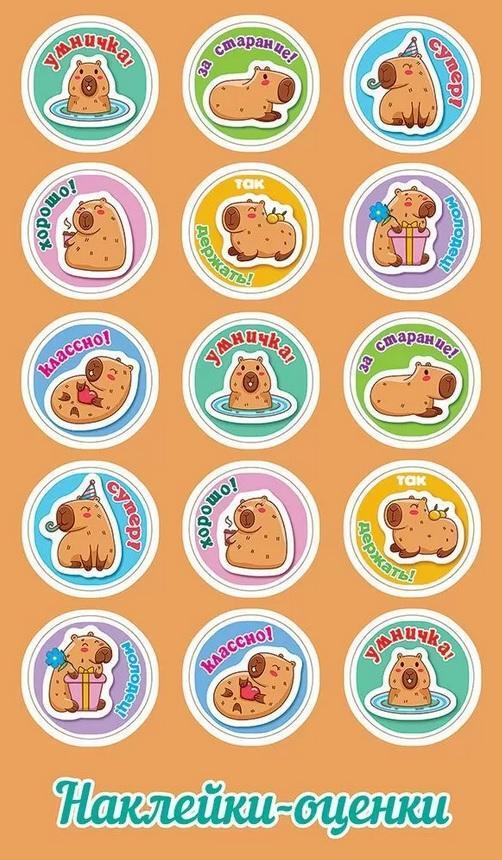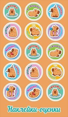 Наклейки-оценки «Капибары», 20 листов, круглые, разноцветные, 91х155 мм, самоклеящаяся бумага