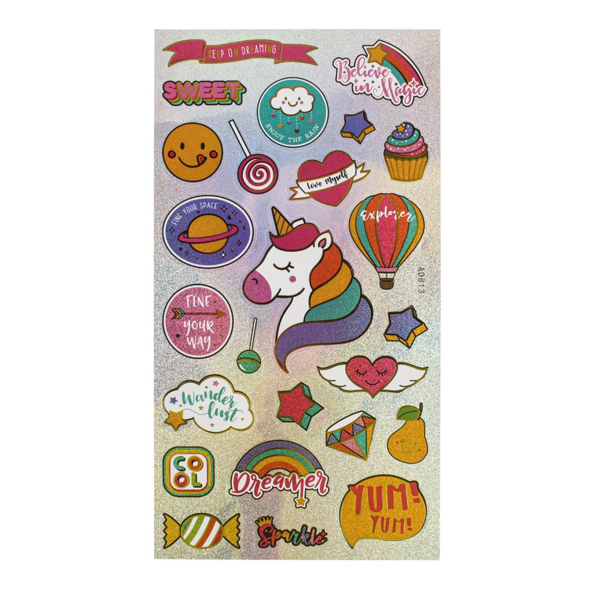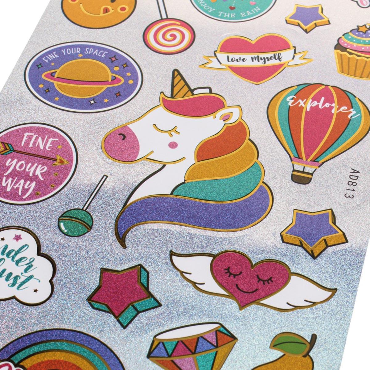 Лист размером 30×15 см содержит 40+ разнообразных стикеров. Яркие цвета устойчивы к выцветанию, а специальный клейкий слой обеспечивает надёжное крепление к любой гладкой поверхности. Компактная упаковка на картонной подложке удобна для хранения и переноски.