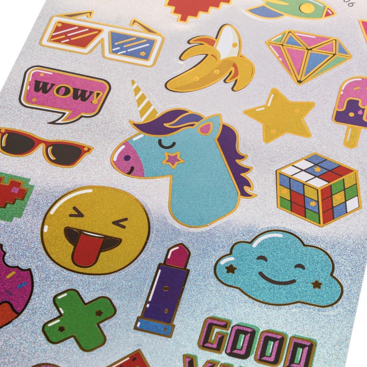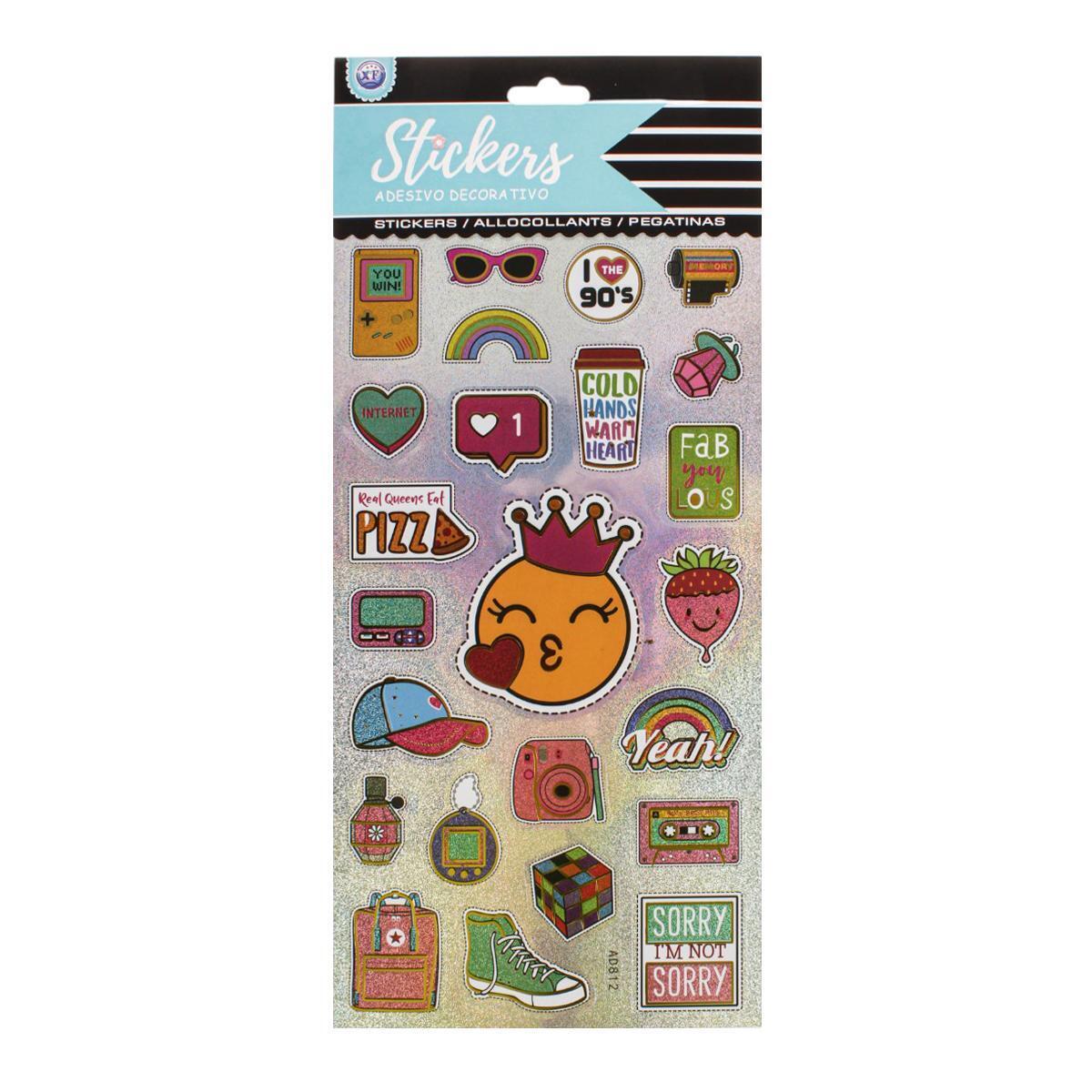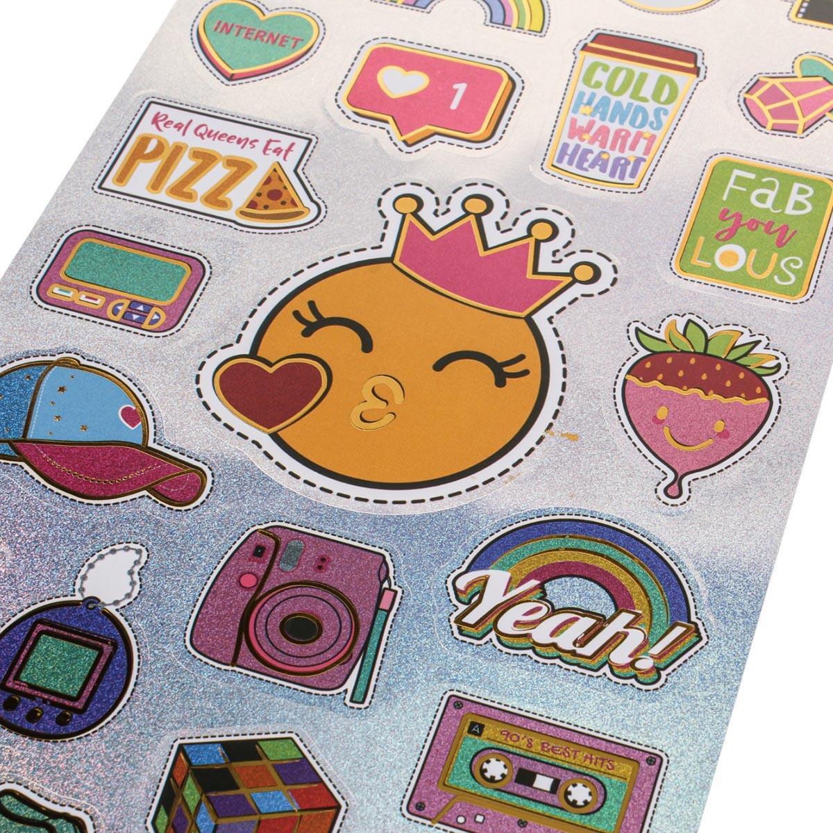 В наборе представлены разнообразные формы и мотивы: звезды, сердца, смайлы, трендовые надписи. Все элементы выполнены в современной цветовой палитре, актуальной для молодежи.