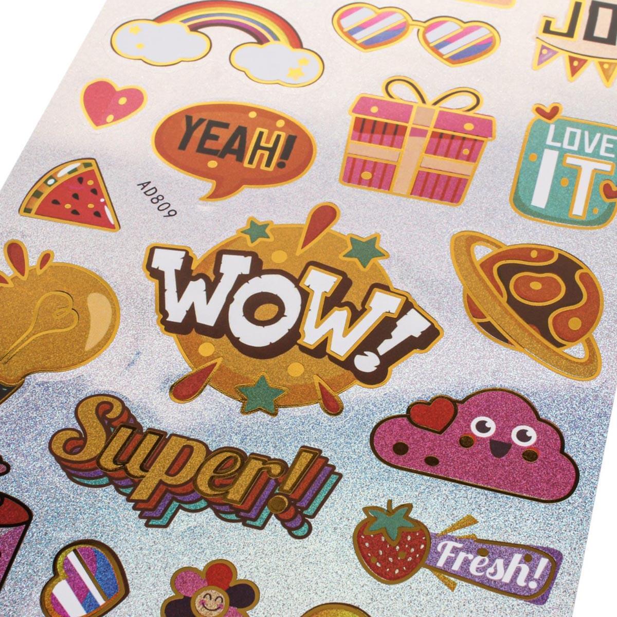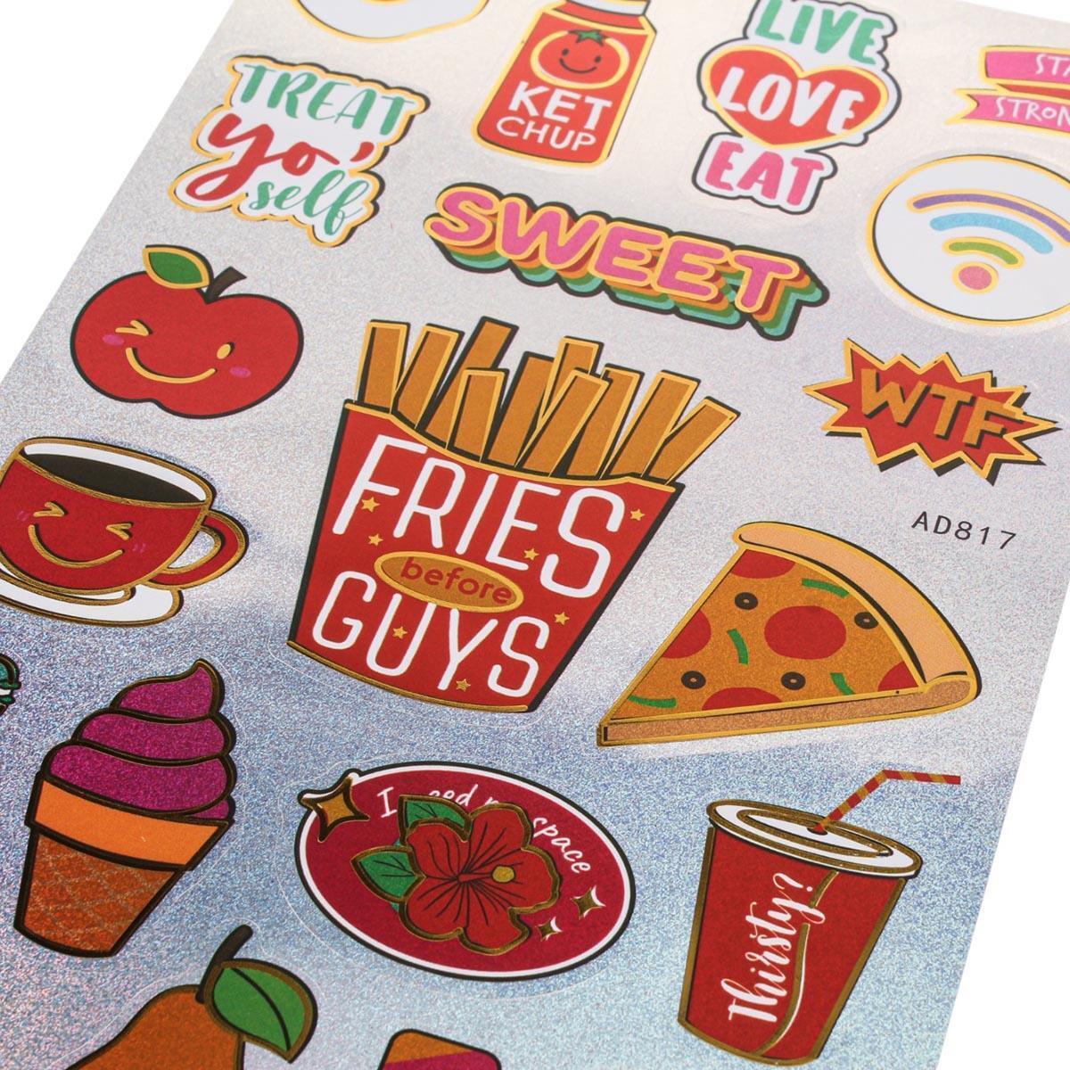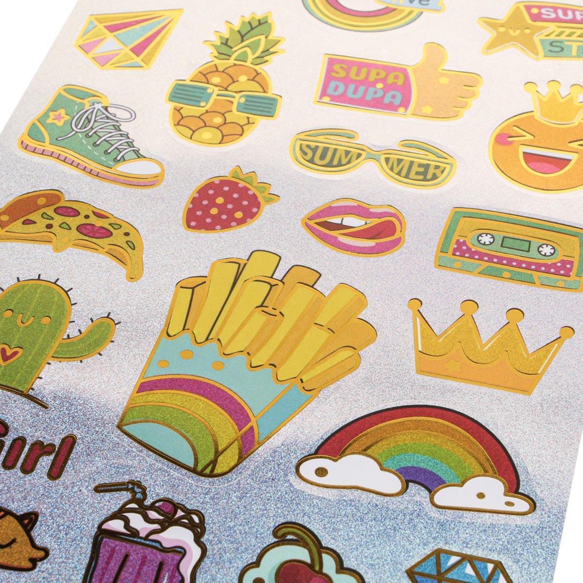 Эти наклейки с голографическим эффектом 'Snack' станут отличным дополнением для вашего декора и творчества. Они идеально подходят для стилизации школьных аксессуаров, создания аппликаций, скрапбукинга и оформления личных вещей. Яркие цвета и разнообразные дизайны наклеек привлекут внимание и добавят индивидуальности вашим проектам.