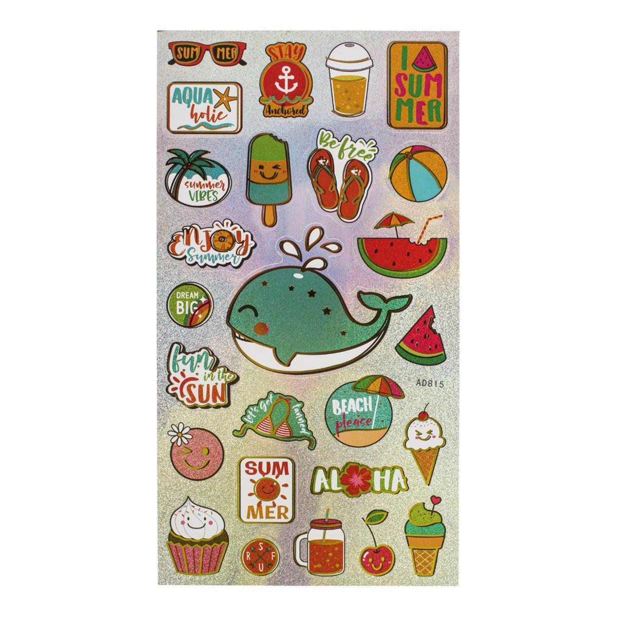 Голографические наклейки 'Summer' мгновенно превратят любую поверхность в стильный акцент интерьера. Благодаря радужному эффекту и трендовым принтам они создают неповторимое настроение лета.