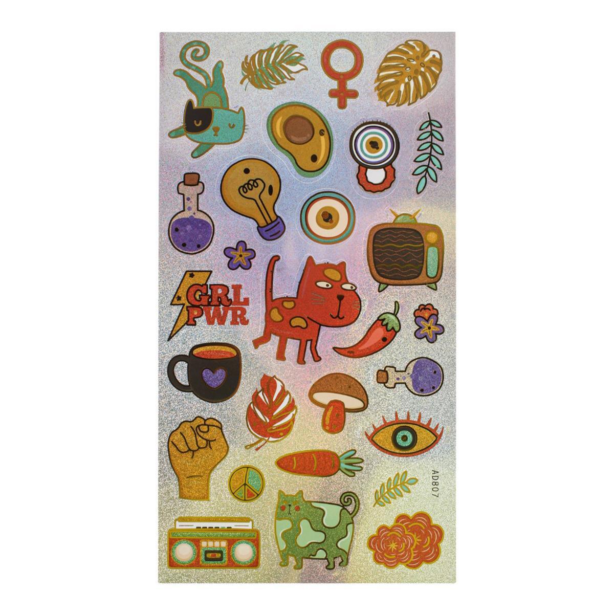 Каждый набор наклеек упакован на картонной подложке, что делает их удобными для хранения и использования. Голографическая текстура наклеек создает эффект блика, привлекая внимание и добавляя визуальный интерес. Эти наклейки не только красивы, но и практичны, так как легко удаляются и не оставляют следов.