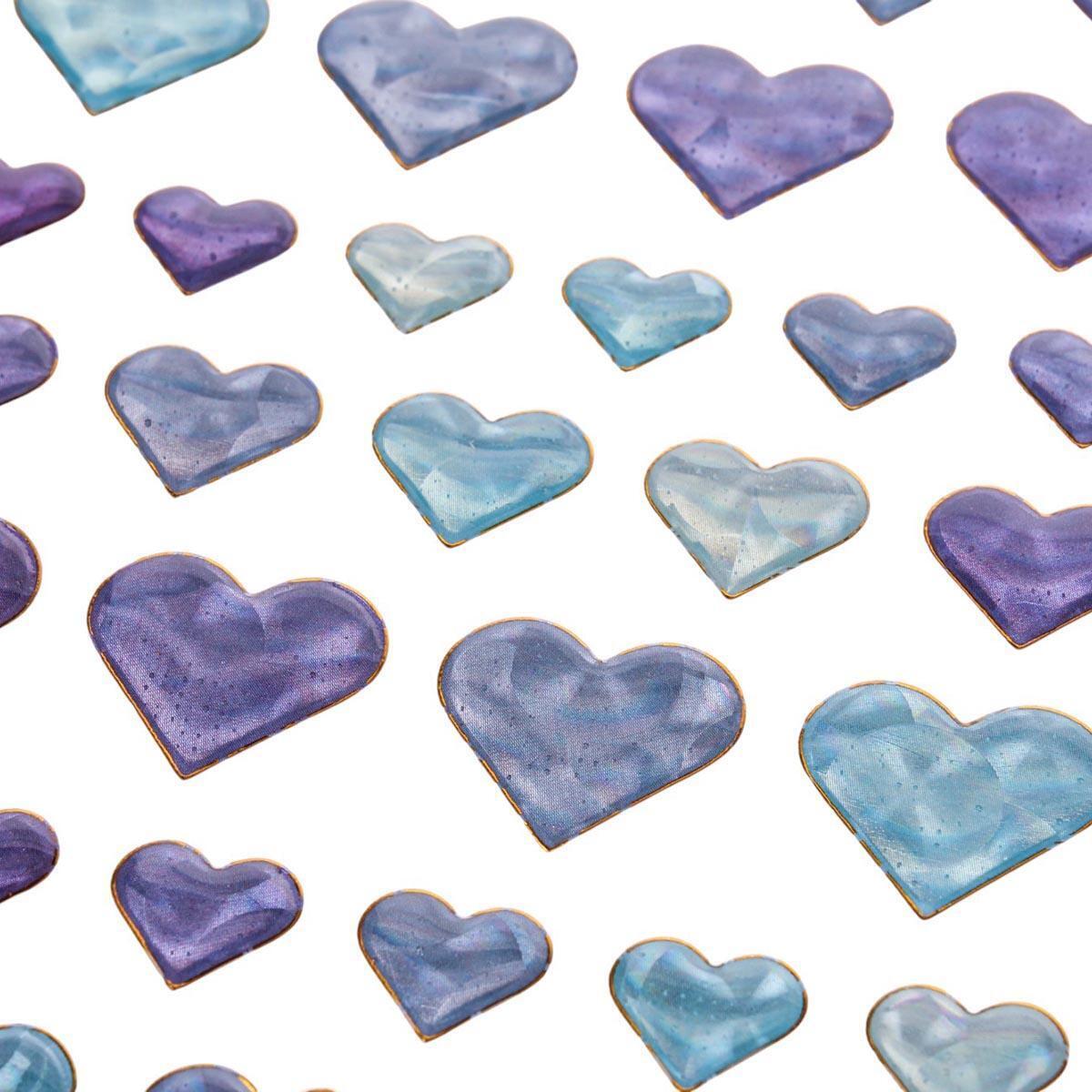 Создавайте неповторимый декор с помощью разноцветных наклеек в виде сердечек! Переливающиеся блики и золотая кайма превратят открытки, подарки и фотоальбомы в маленькие произведения искусства.
