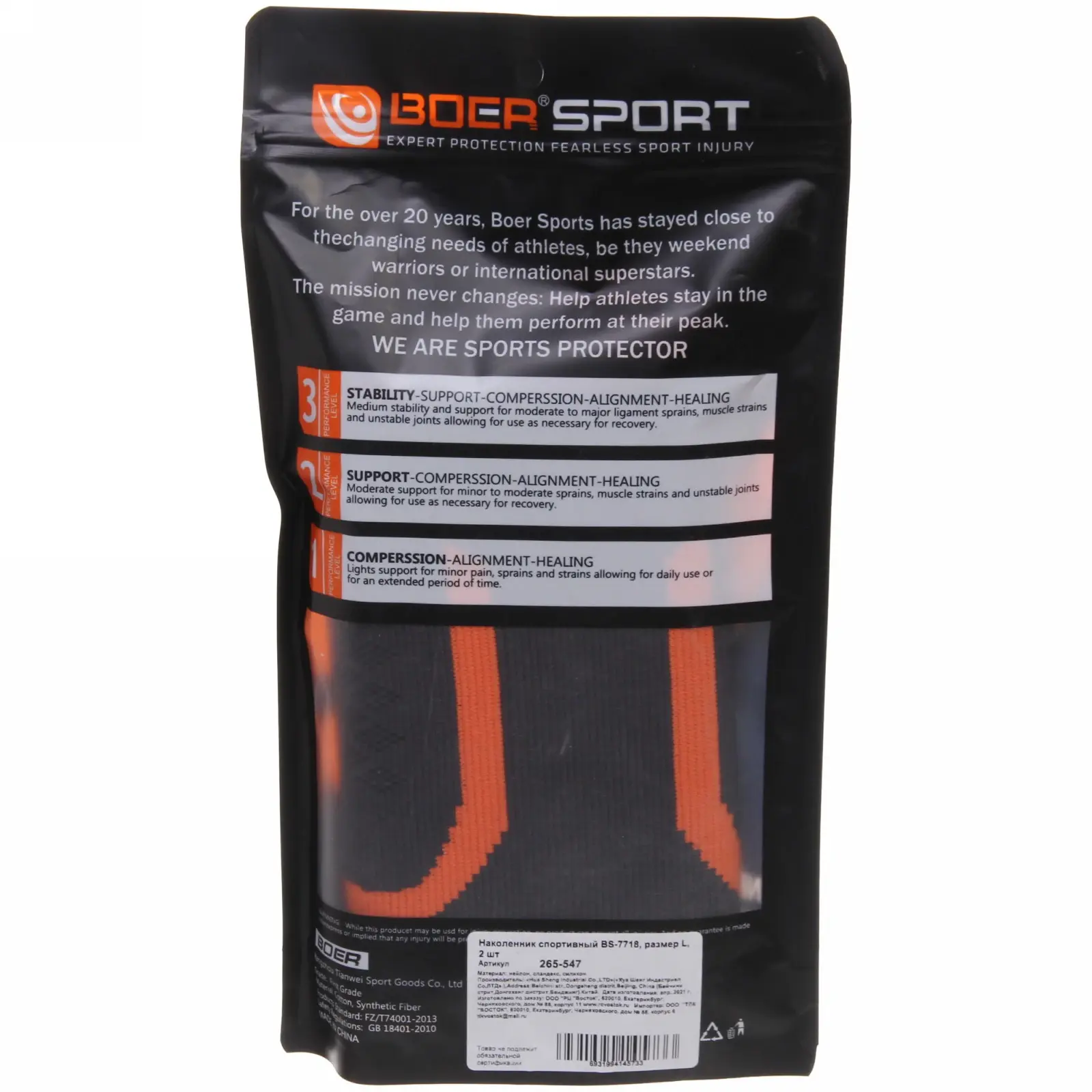 Размер L (окружность колена 36-40 см) подходит большинству пользователей. Цветовые акценты в оранжевых, синих и красных тонах добавляют стильный спортивный вид. Уход: машинная стирка при 30°C без отбеливателя.