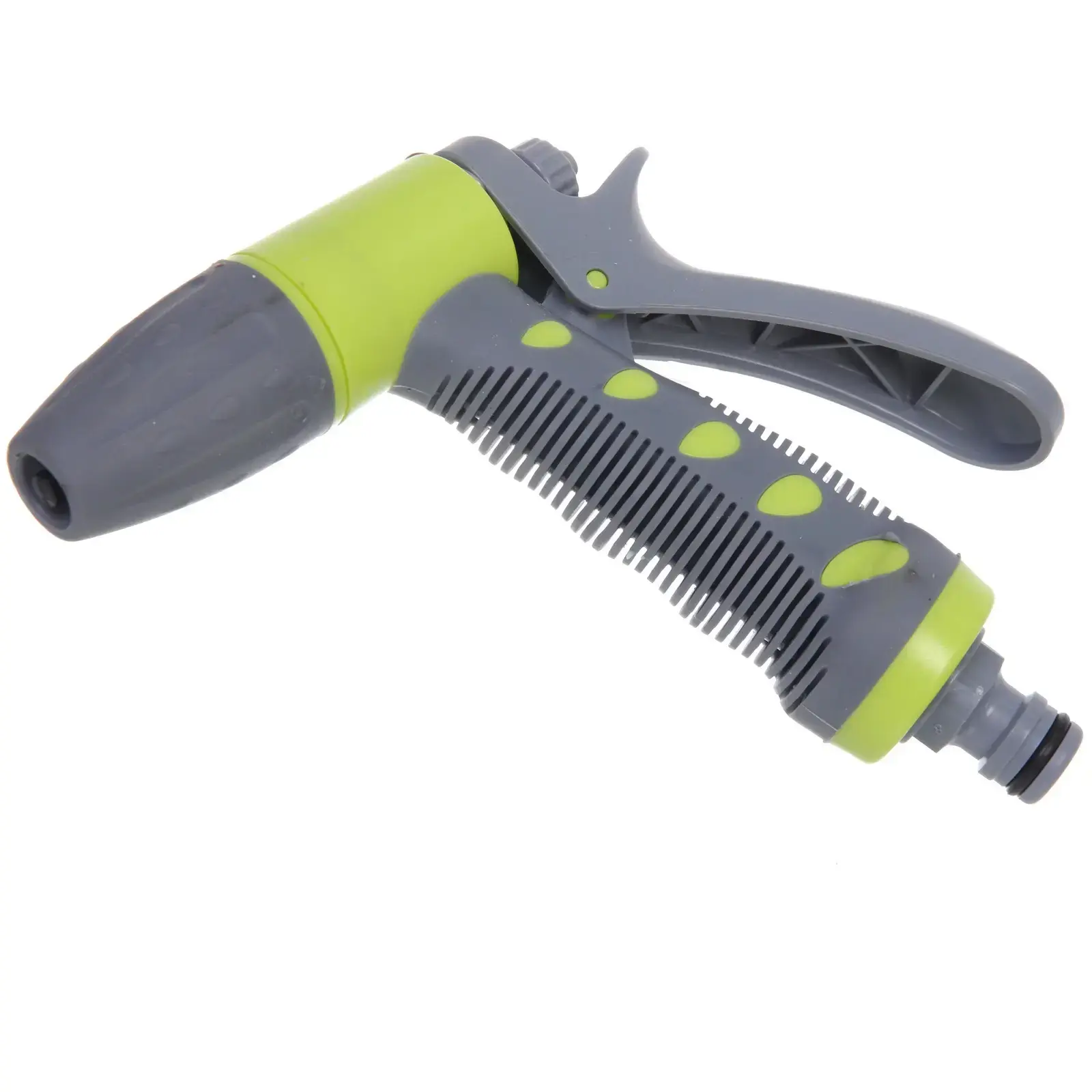 Наконечник выполнен из прочного пластика, что гарантирует его долговечность. Цветовая гамма в сером и зеленом цветах делает его стильным дополнением к вашему садовому инвентарю. Размеры не указаны, но форма и конструкция обеспечивают удобство в использовании. Не упустите возможность сделать полив более эффективным и приятным с наконечником-пистолетом «Green»!