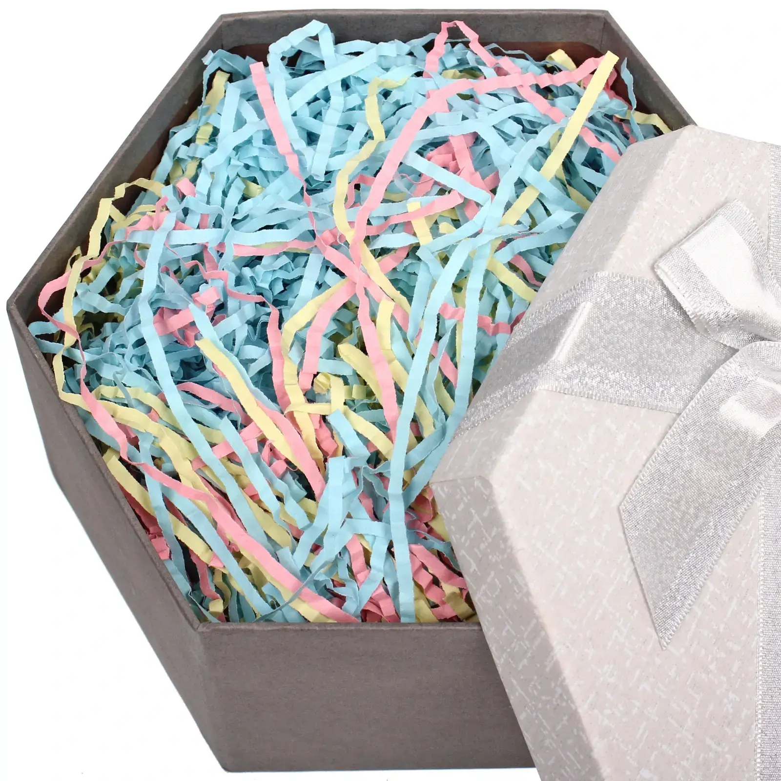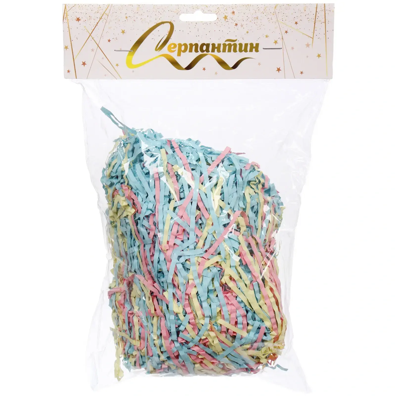 Бумажный наполнитель 'Радуга' создаст праздничное настроение и подчеркнет ваше внимание к деталям. Мягкие пастельные тона голубого, розового и желтого цветов идеально сочетаются между собой, формируя нежную цветовую палитру.