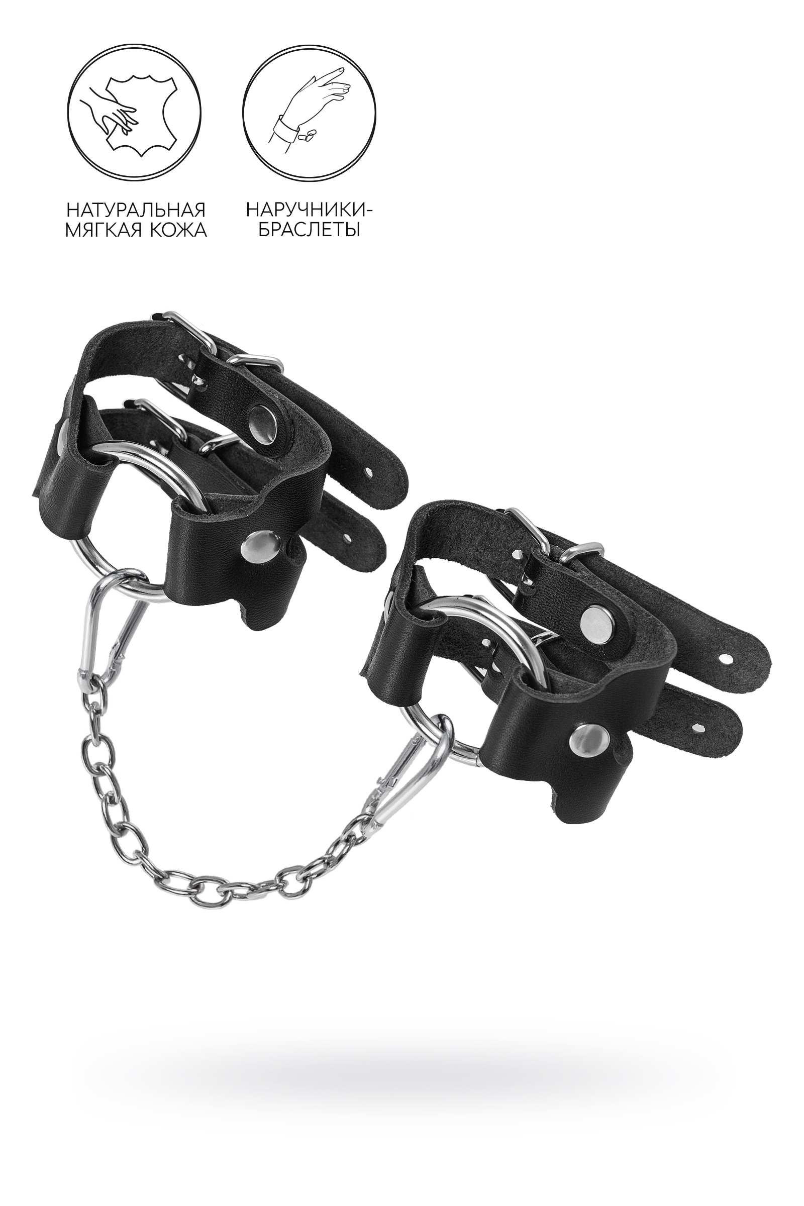 Наручники-браслеты из натуральной кожи, черные, длина сцепки 24см