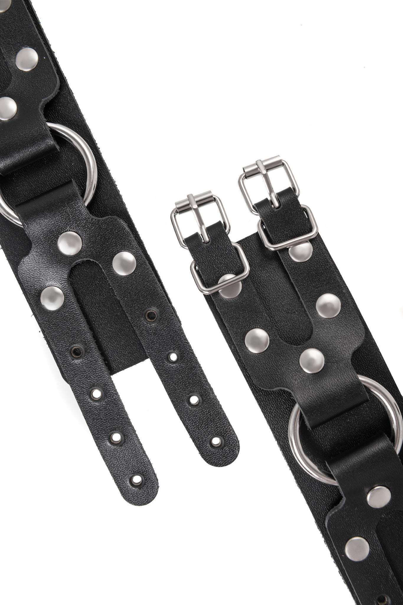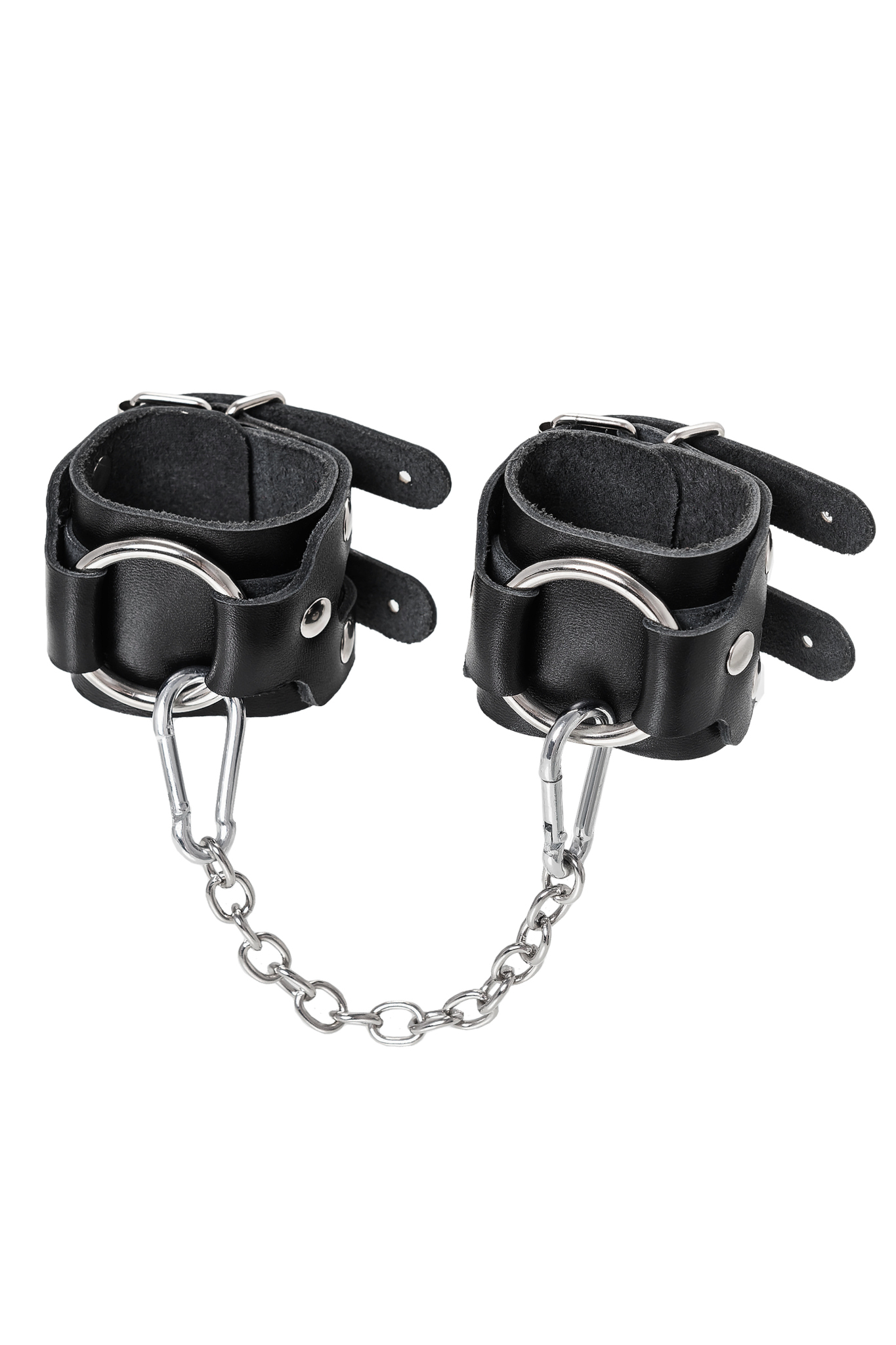 Цвет: черный. Материал: натуральная кожа. Комплектность: 1 (1 коробка, 1 аксессуар). Вибрация: без вибрации. Эти наручники-браслеты станут отличным дополнением к вашему арсеналу аксессуаров и помогут вам наслаждаться ролевыми играми на новом уровне!