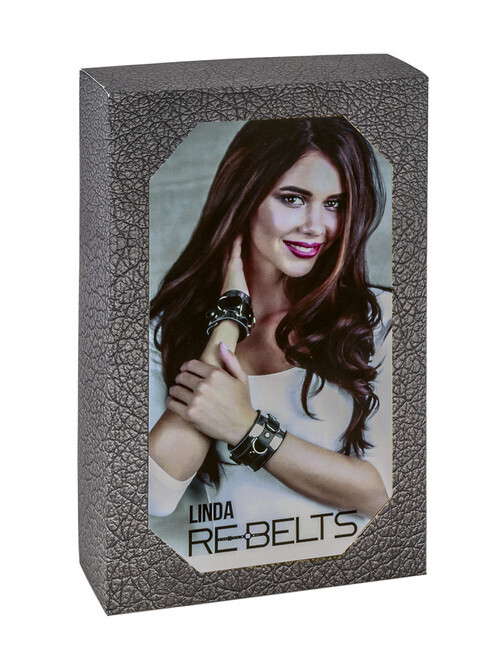 Наручники кожаные «Linda Black» с зеркальным элементом, ремни, манжеты 19 см, подарочная коробка