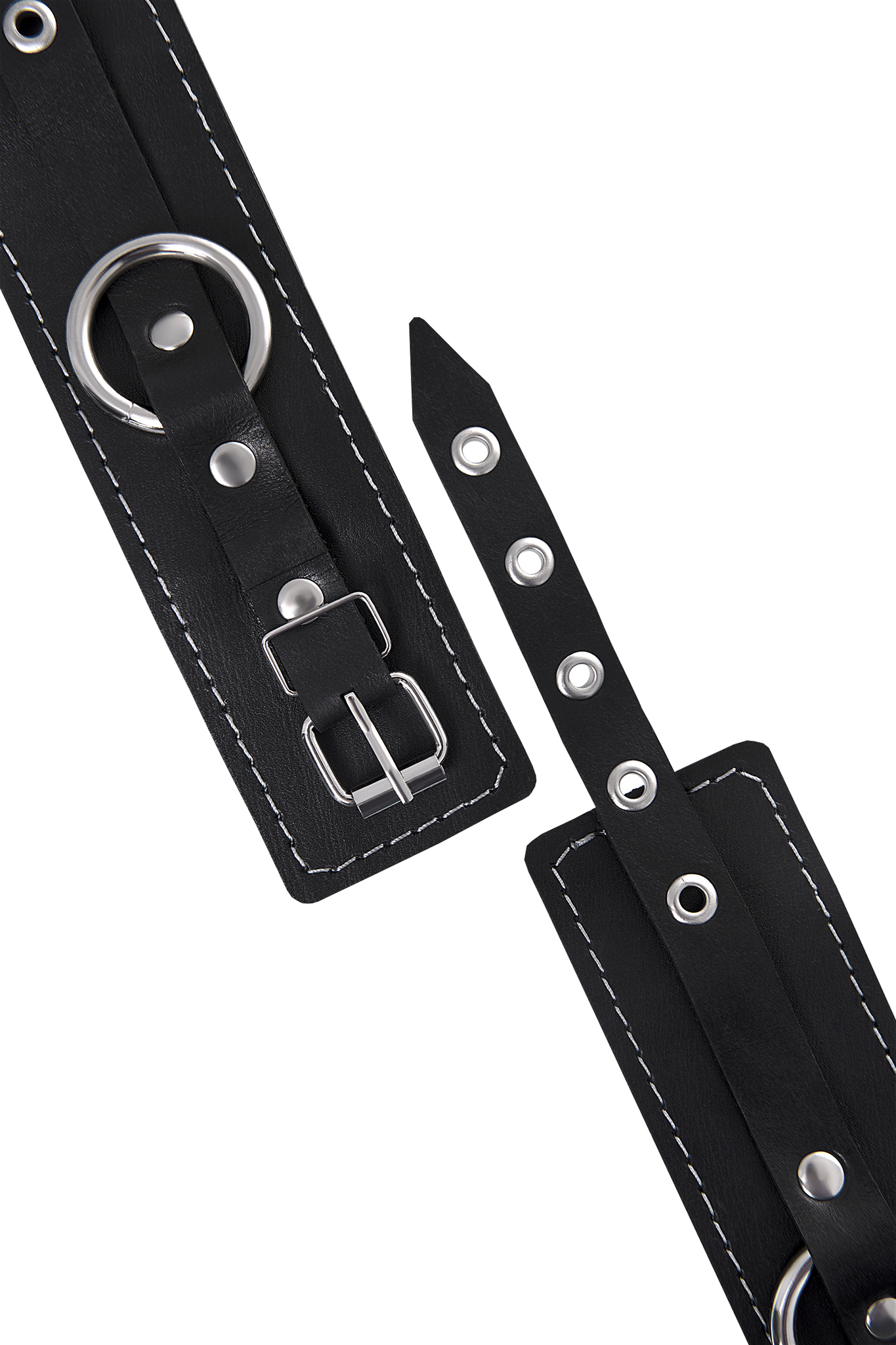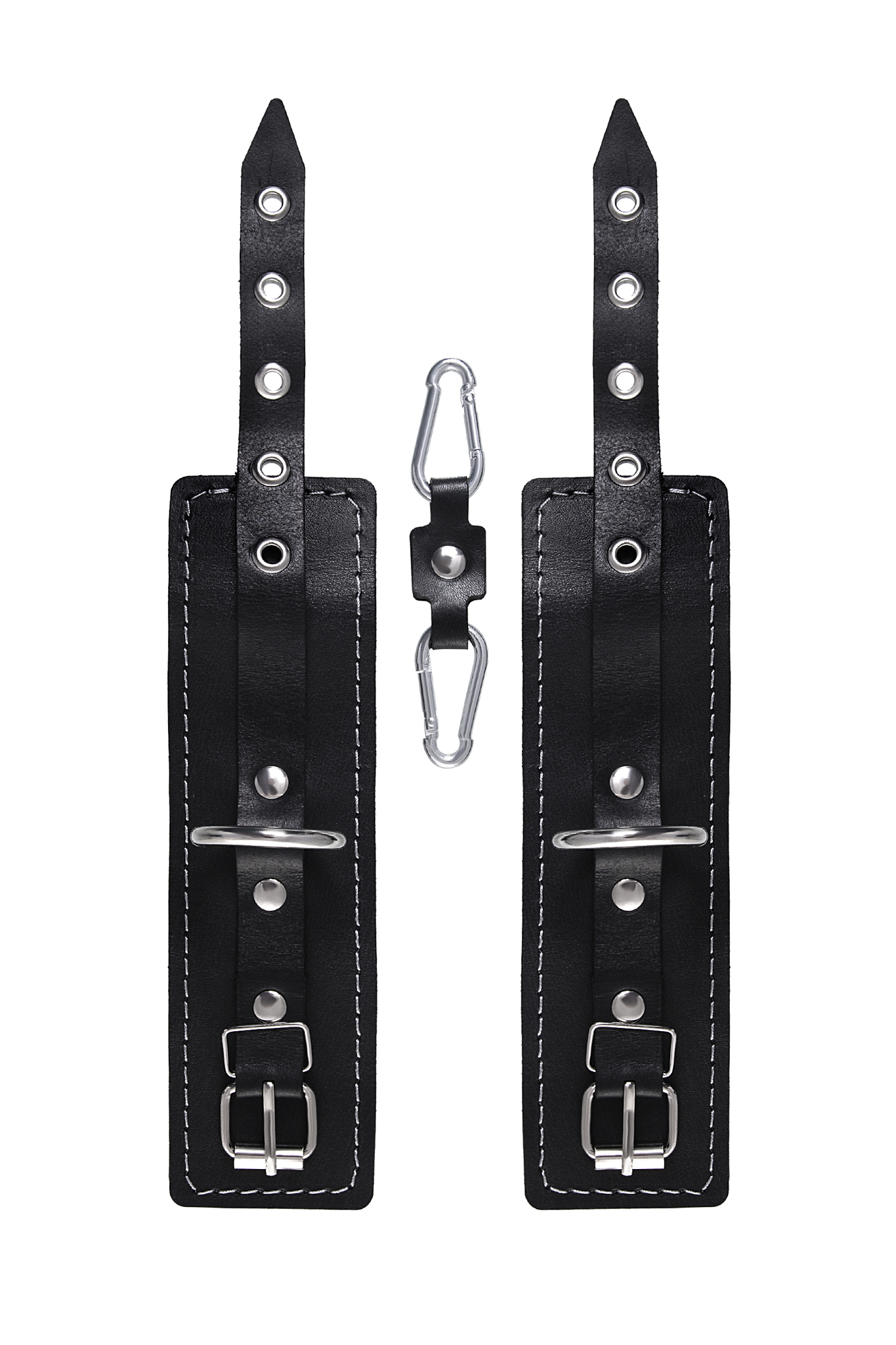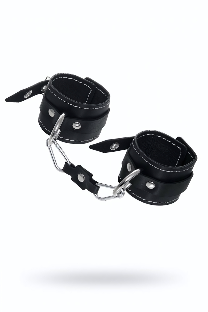 Устройство подходит для совместного использования в БДСМ-практиках. Каждая манжета регулируется пряжкой, ширина составляет около 5,5 см, длина около 20 см, что обеспечивает комфортную посадку на разные запястья. Наличие двух карабинов и колец позволяет использовать изделие как раздельно, так и в связке. Прочные металлические элементы позволяют присоединять дополнительные аксессуары к широким кольцам.