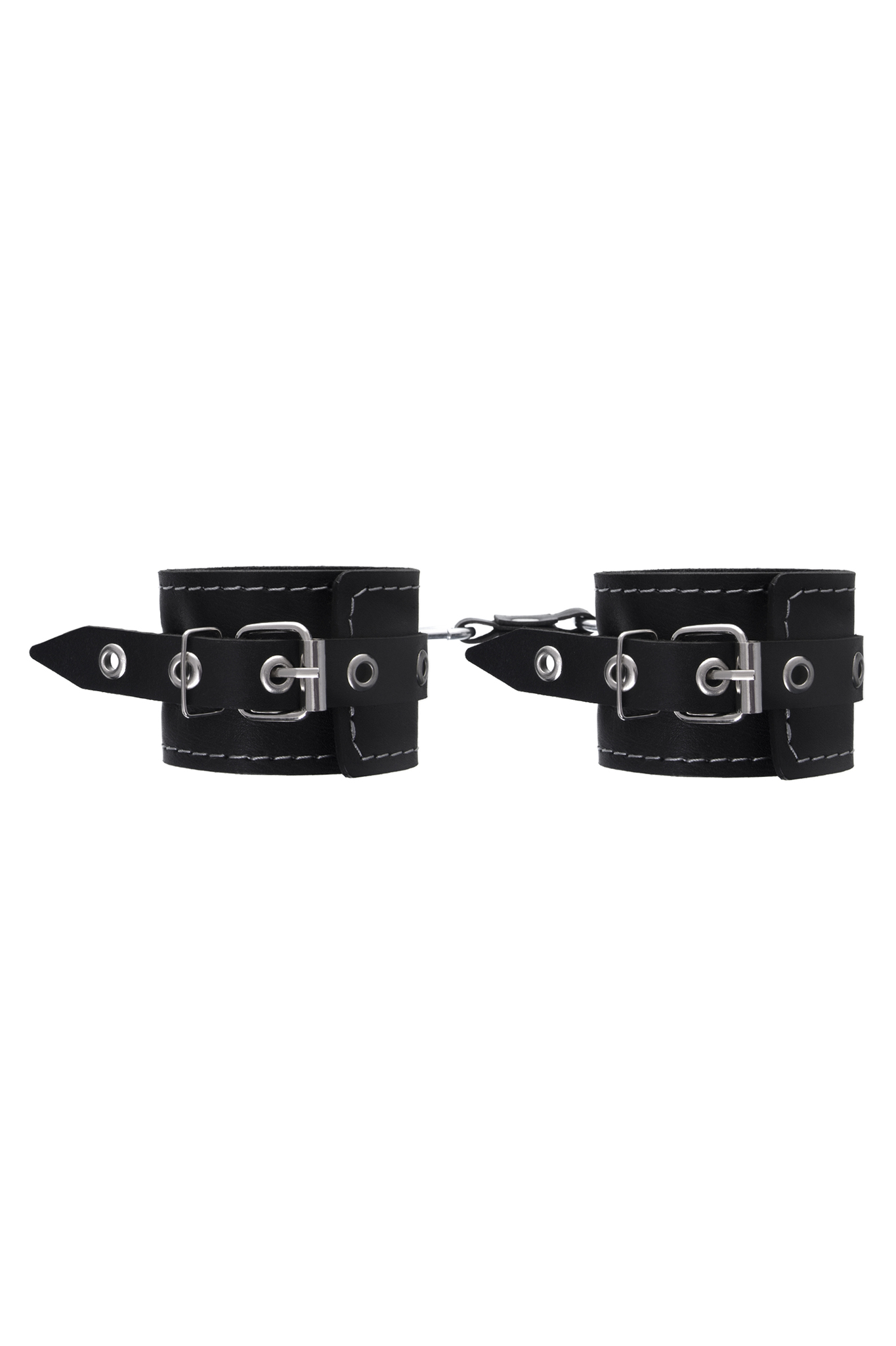 Наручники двухслойные pecado, черные, с белой строчкой, регулируемые, кожа, 5,5 см x 20 см