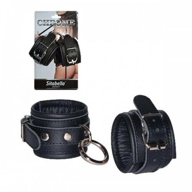 Наручники кожаные регулируемые «Chrome Collection», натуральная кожа, металл, черный