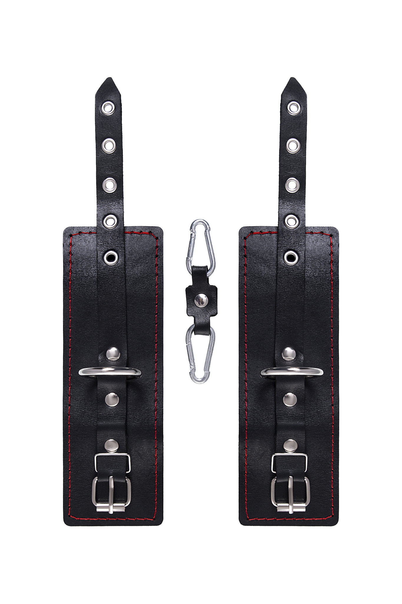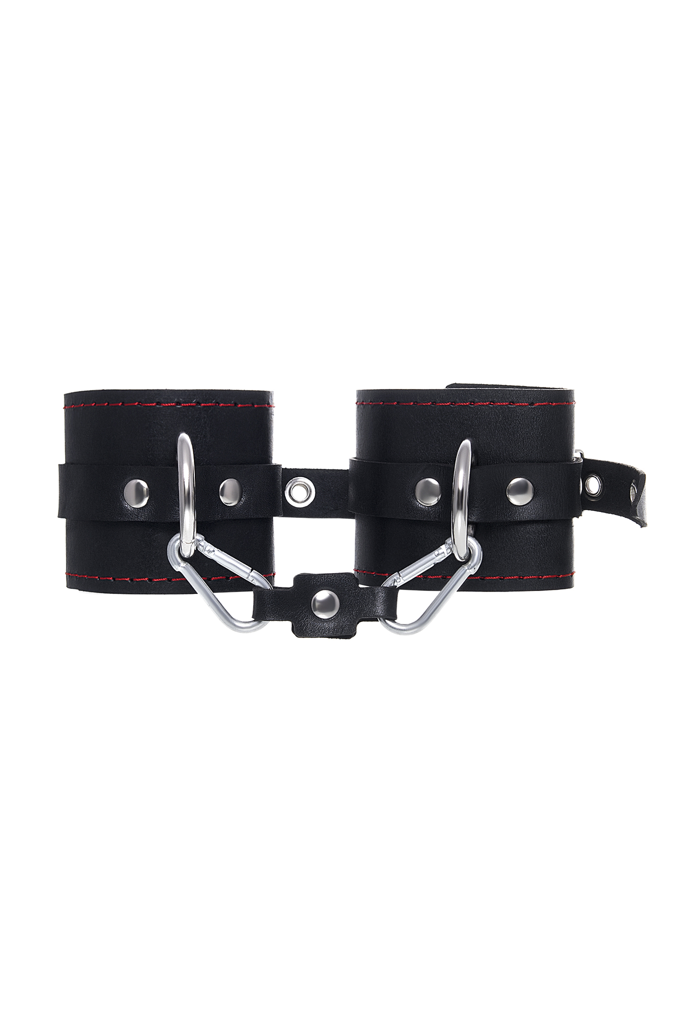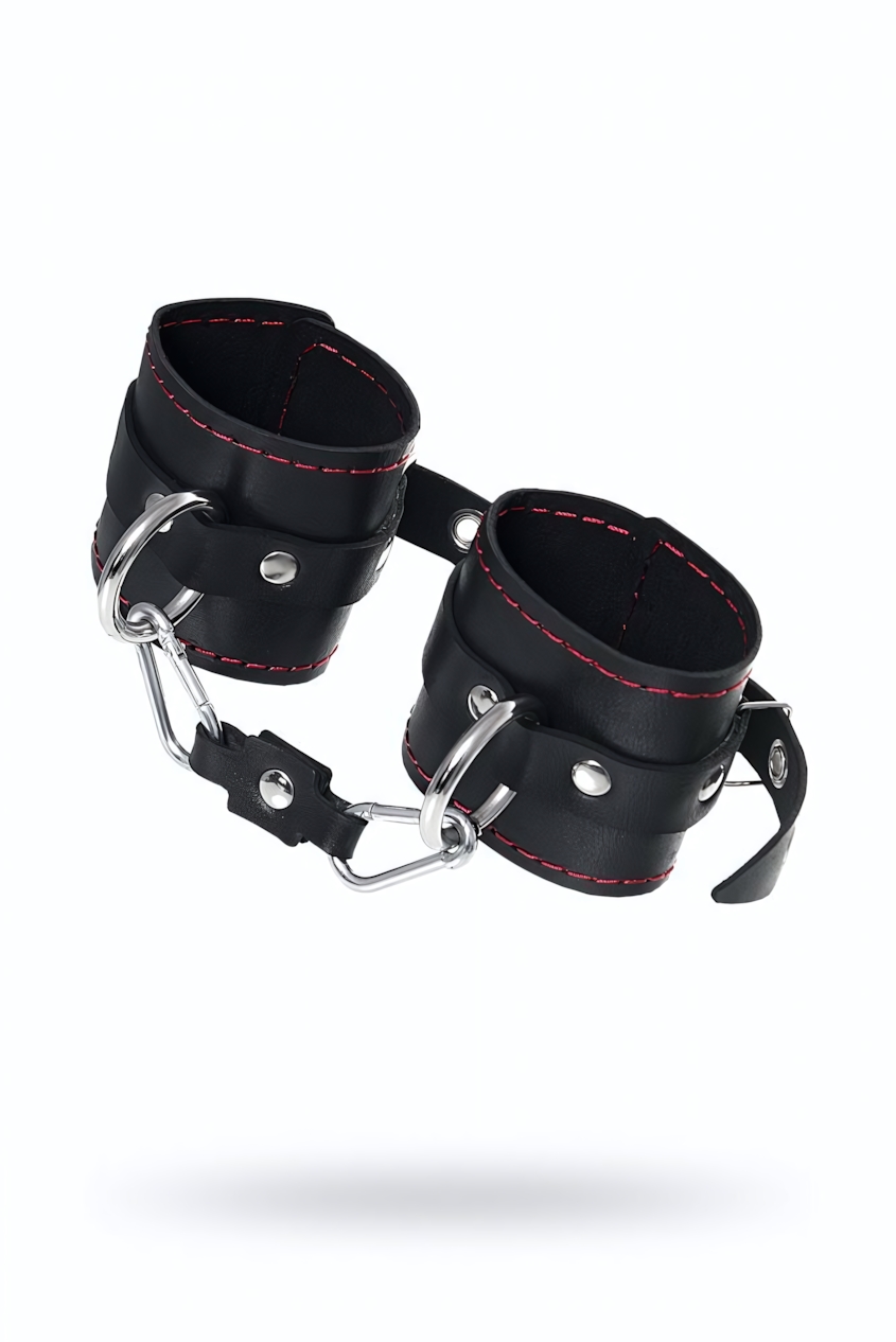 Наручники состоят из двух манжет, соединенных прочной металлической конструкцией. Регулировка осуществляется пряжками, что позволяет подобрать комфортный размер для мужчин и женщин. В комплект входят два карабина и прочные кольца, благодаря которым изделие можно использовать как манжеты для фиксации, а также как крепление для других аксессуаров.
