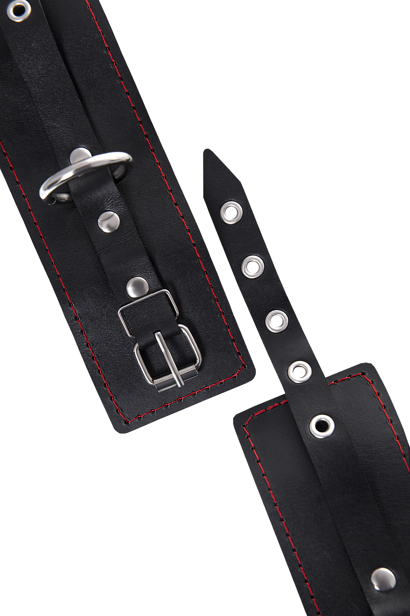 Эти наручники предлагают идеальное сочетание комфорта, стиля и надежности, чтобы ваши игры были безопасны и эргономичны. Натуральная кожа черного цвета с красной строчкой выглядит стильно и подчеркивает характер изделия, а регулируемые пряжки обеспечивают точную посадку по запястью, что делает использование удобным и предсказуемым.