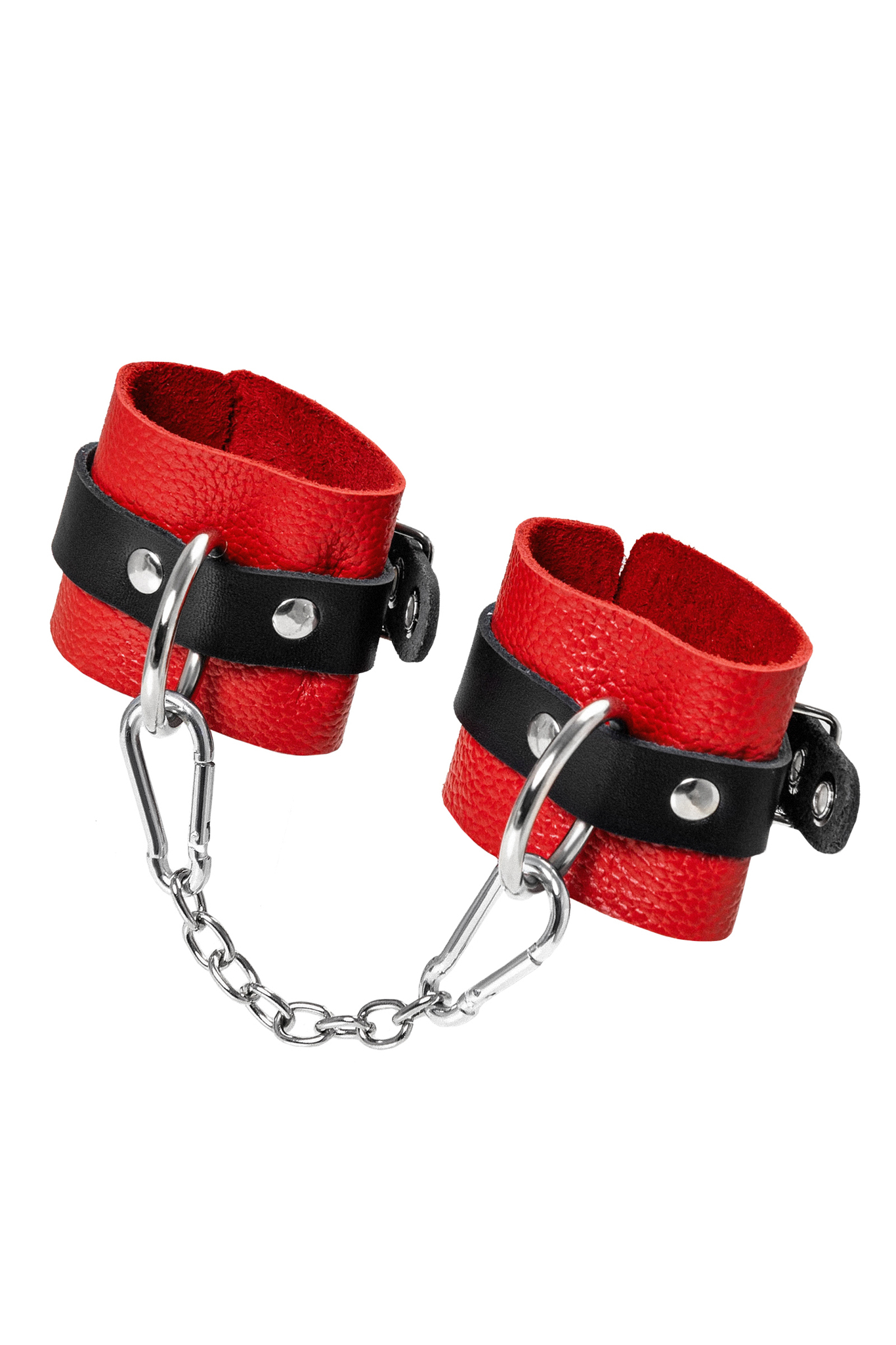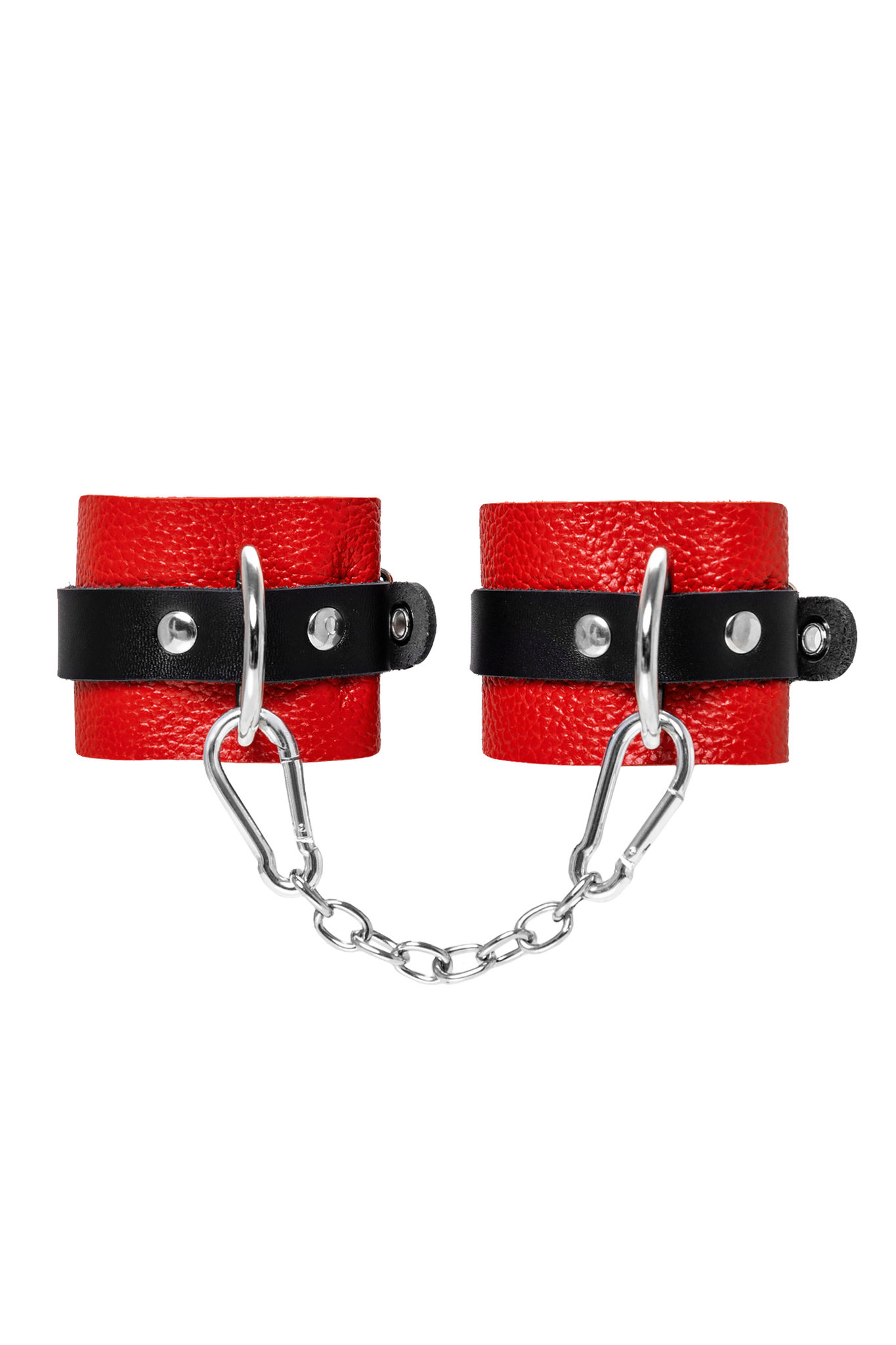 Наручники Pecado с цепочкой, красные кожаные, регулируемые 18см