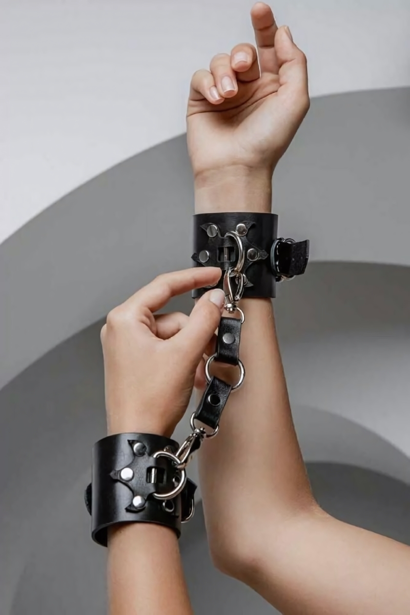 Ширина наручников составляет 6 см, а длина — 27 см. Толщина кожи варьируется от 2.2 до 2.5 мм, что обеспечивает прочность и надежность. Эти наручники идеально сочетаются с другими аксессуарами, такими как чокеры и портупеи, что позволяет создать уникальный образ для ваших игр.