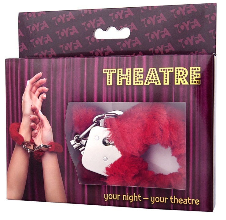 Наручники «THEATRE» с меховой отделкой, красные, цепочка 6 см, 2 ключа, регулируемый механизм