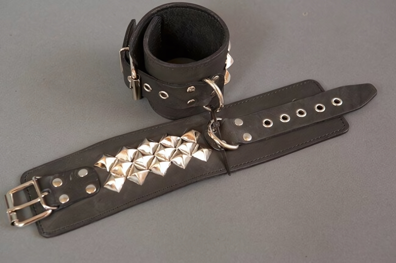 Эти наручники, выполненные из высококачественной натуральной кожи, обеспечивают не только надежность, но и стильный внешний вид. Они идеально подходят для тех, кто ценит комфорт и эстетику в интимных моментах. Черный цвет и декор в виде заклепок придают им особую привлекательность.