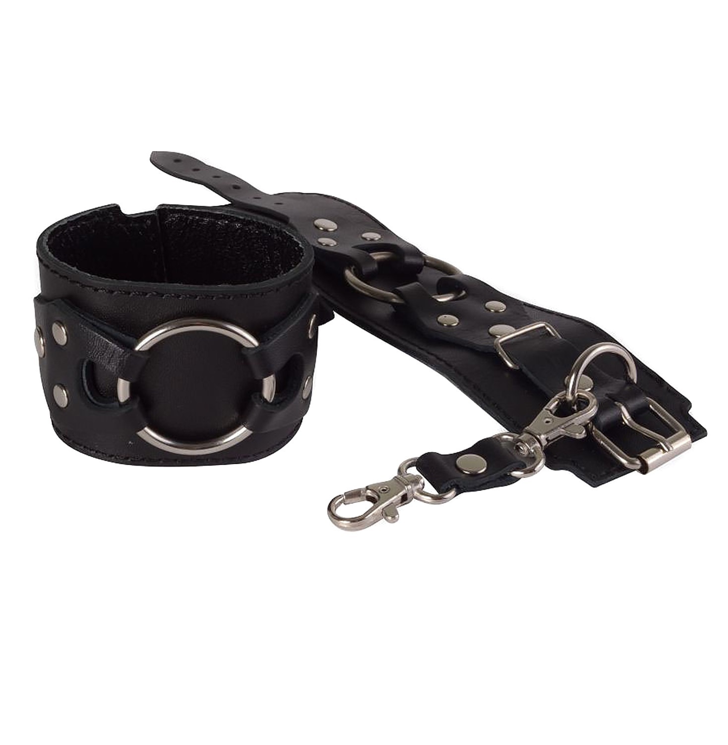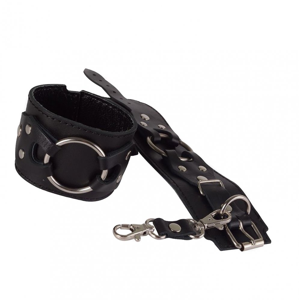 Эти наручники выделяются не только своим стильным внешним видом, но и качественными материалами. Внутренняя часть выполнена из бархатистой велюровой кожи, что обеспечивает комфорт даже при длительном использовании. Металлические элементы имеют никелевое покрытие, что гарантирует долговечность и устойчивость к коррозии. Готические фигурные накладки с большим металлическим кольцом придают наручникам агрессивной сексуальности и роскоши, что делает их настоящим украшением вашей коллекции.