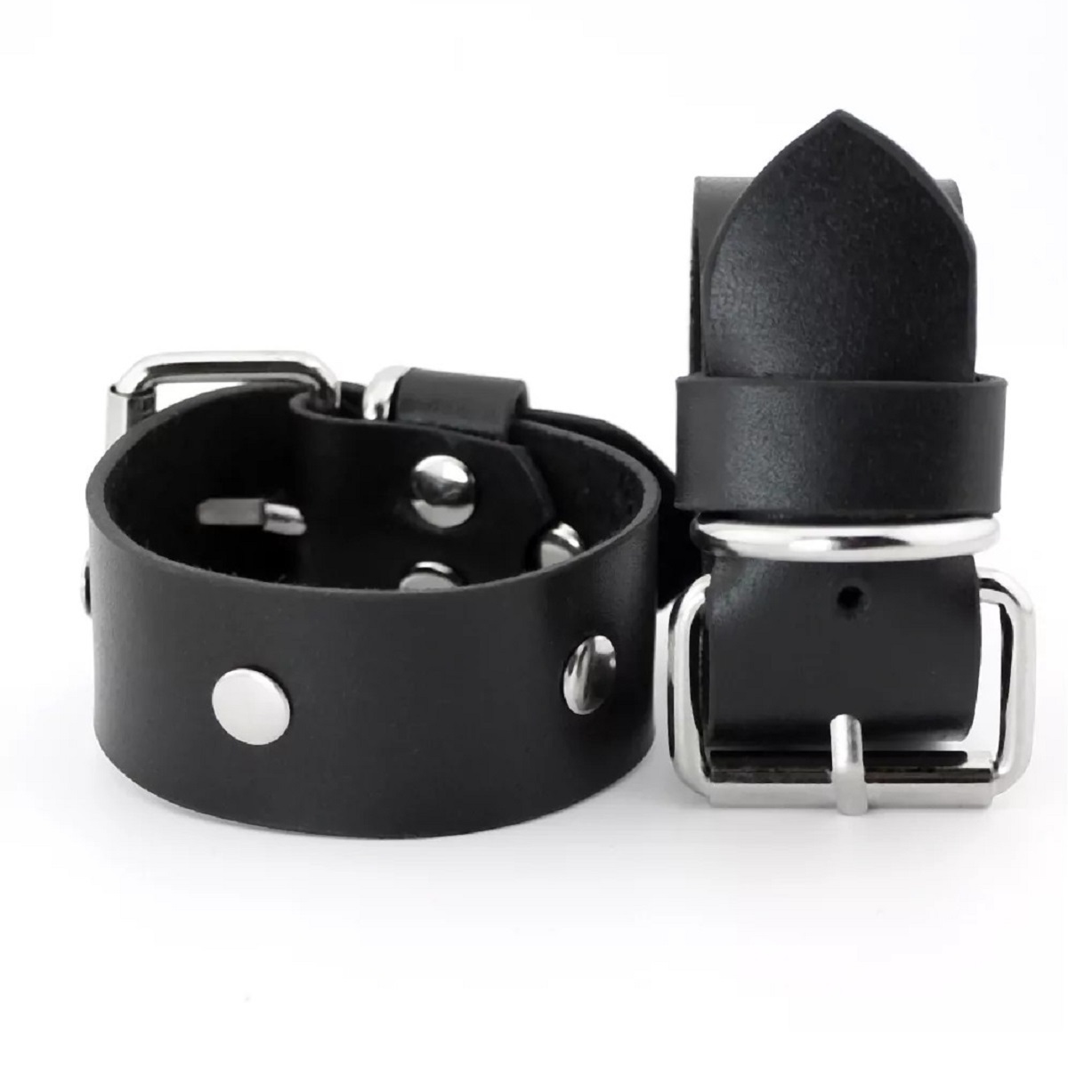 Наручники кожаные 'ПодКожей', черные, ширина 3см, регулировка 15-20см
