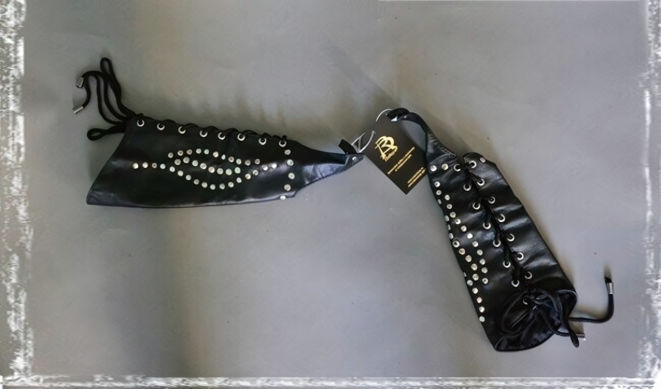 Эксклюзивные кожаные нарукавники с регулируемой шнуровкой — идеальное сочетание эстетики и функциональности. Изделие из натуральной кожи с металлическими декоративными элементами подчеркнет индивидуальность и добавит дерзости вашему образу.