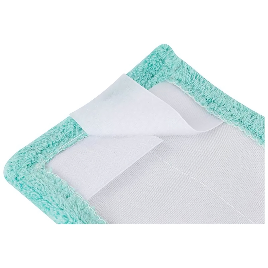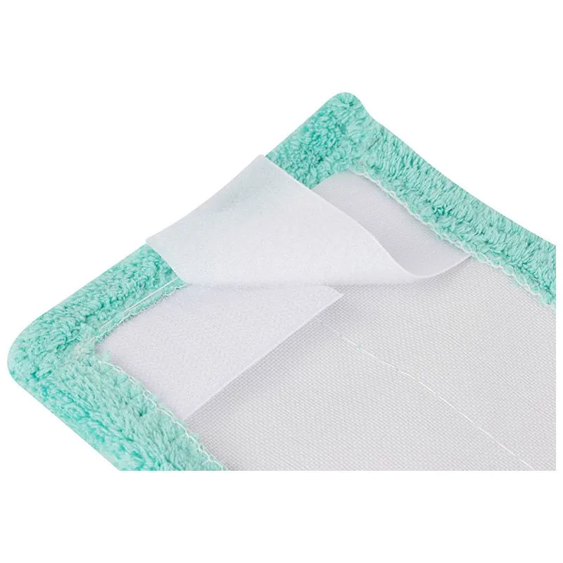 Конструкция изделия включает в себя прочную белую основу с сетчатой текстурой и контрастную бирюзовую окантовку, выполненную из плотного ворсистого материала. Такой дизайн не только эстетично выглядит в интерьере, но и повышает функциональность насадки при очистке сложных участков. Текстильные полосы-липучки надежно пришиты к основе, обеспечивая стабильное положение насадки на швабре и исключая ее соскальзывание во время активных движений. Выбирая продукцию серии "MopM3-Eco-H", вы обеспечиваете себе комфорт, гигиеничность и чистоту в доме без лишних усилий.