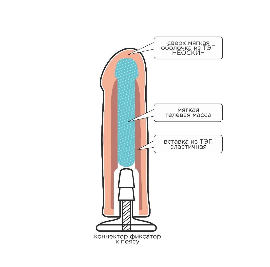 Насадка для страпона «Harness», 18 см, Superskin, бежевый, анатомическая форма, водонепроницаемая