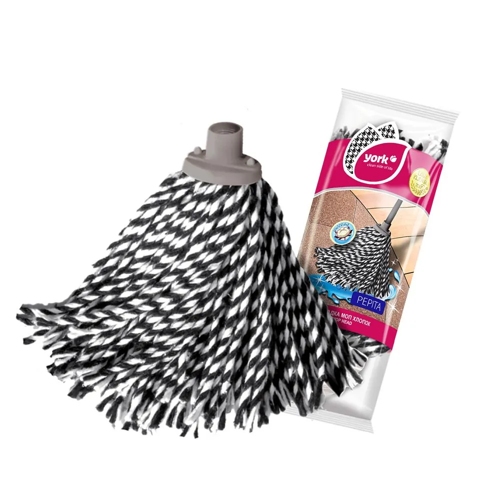 Насадка выполнена из хлопковых нитей, скрученных в плотные жгуты, что обеспечивает равномерное распределение влаги и комфортную работу без разводов. Пластиковое основание с резьбой гарантирует стабильное крепление во время уборки. Отличный выбор для поддержания чистоты на кухне, в прихожей или ванной комнате.