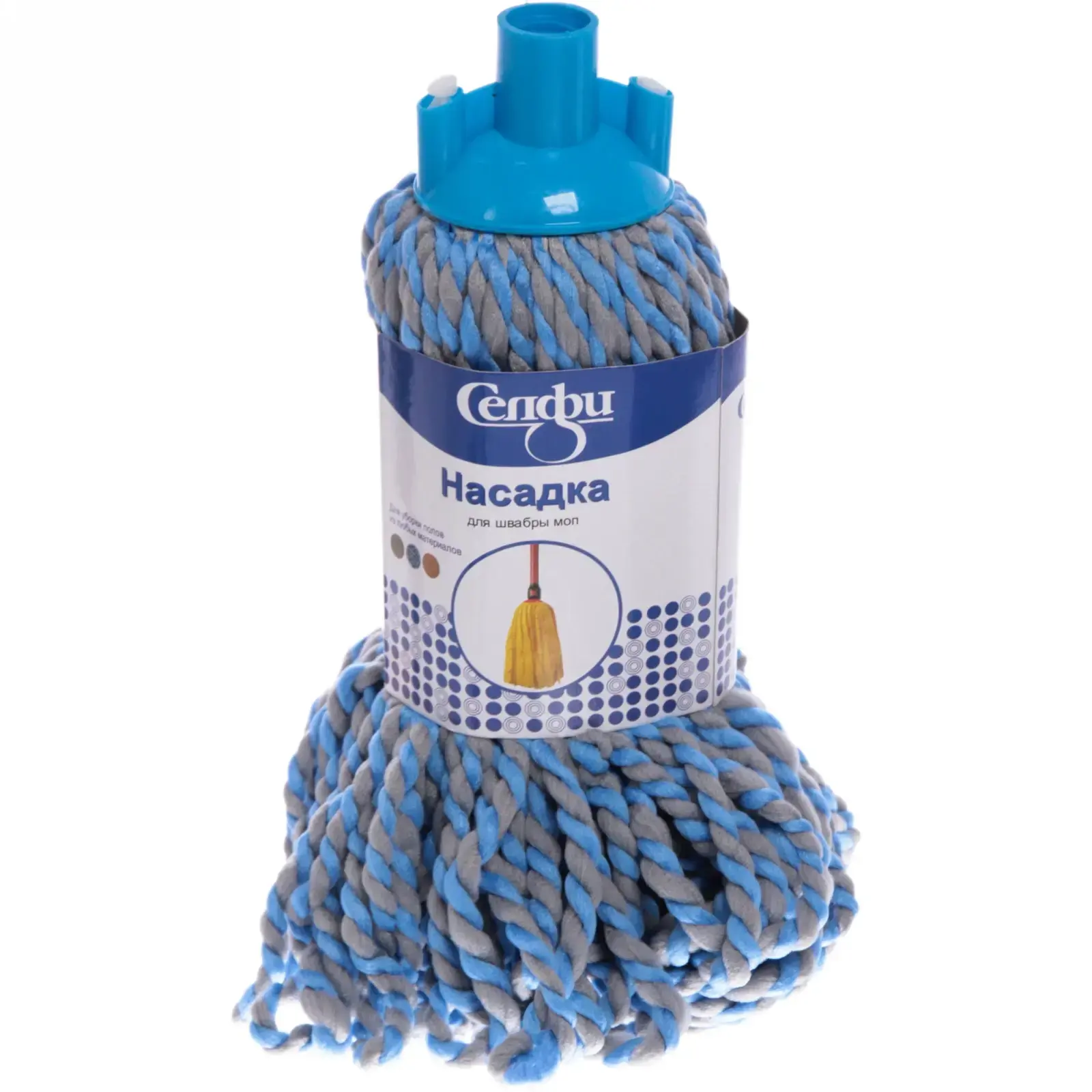 Сменная насадка для швабры: хлопковая, 140 г, серо-голубая, эффективное впитывание