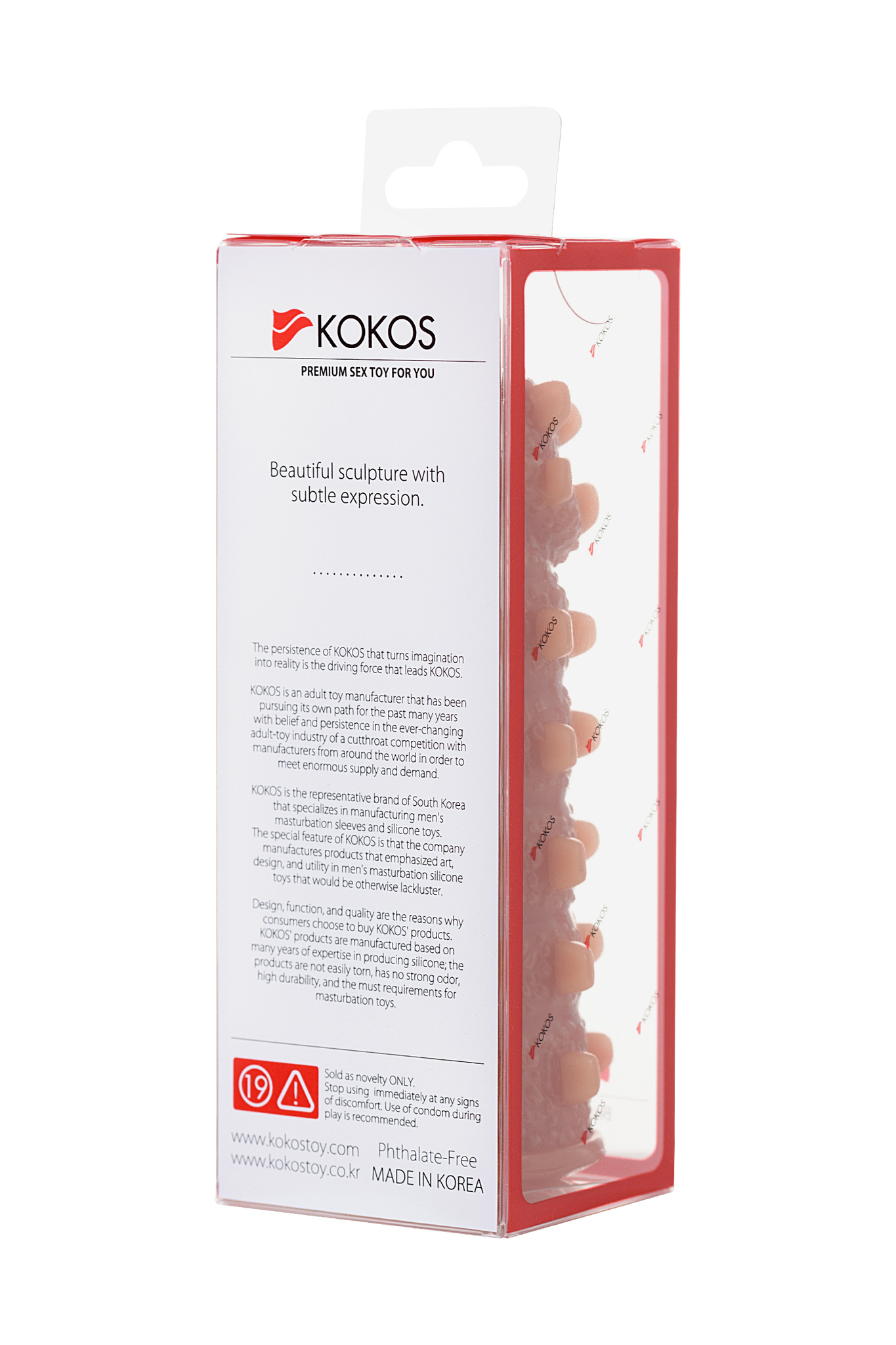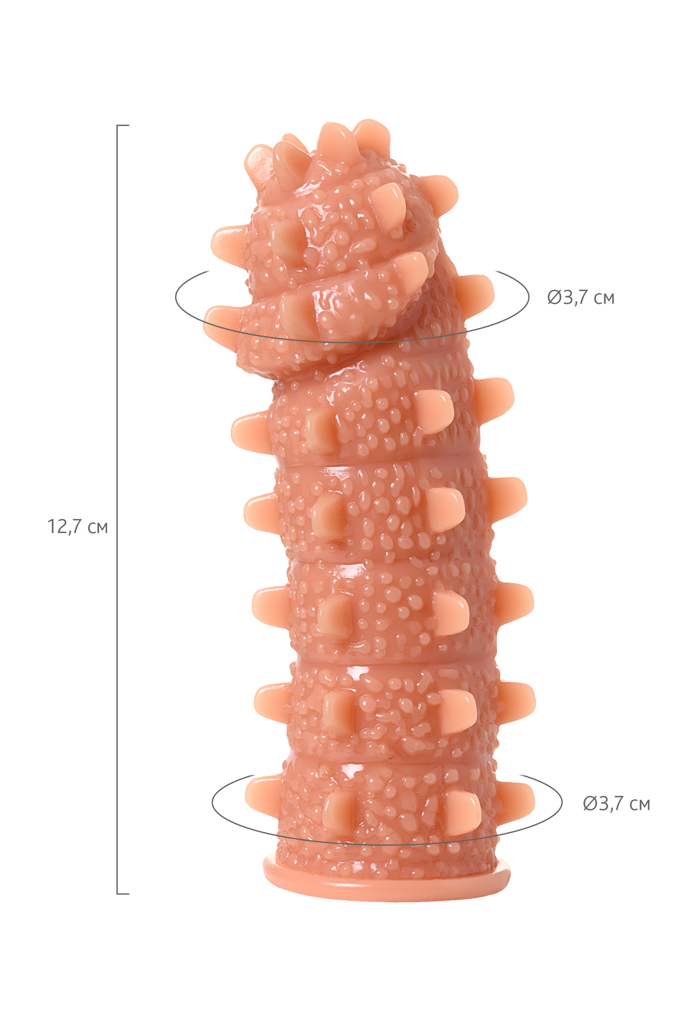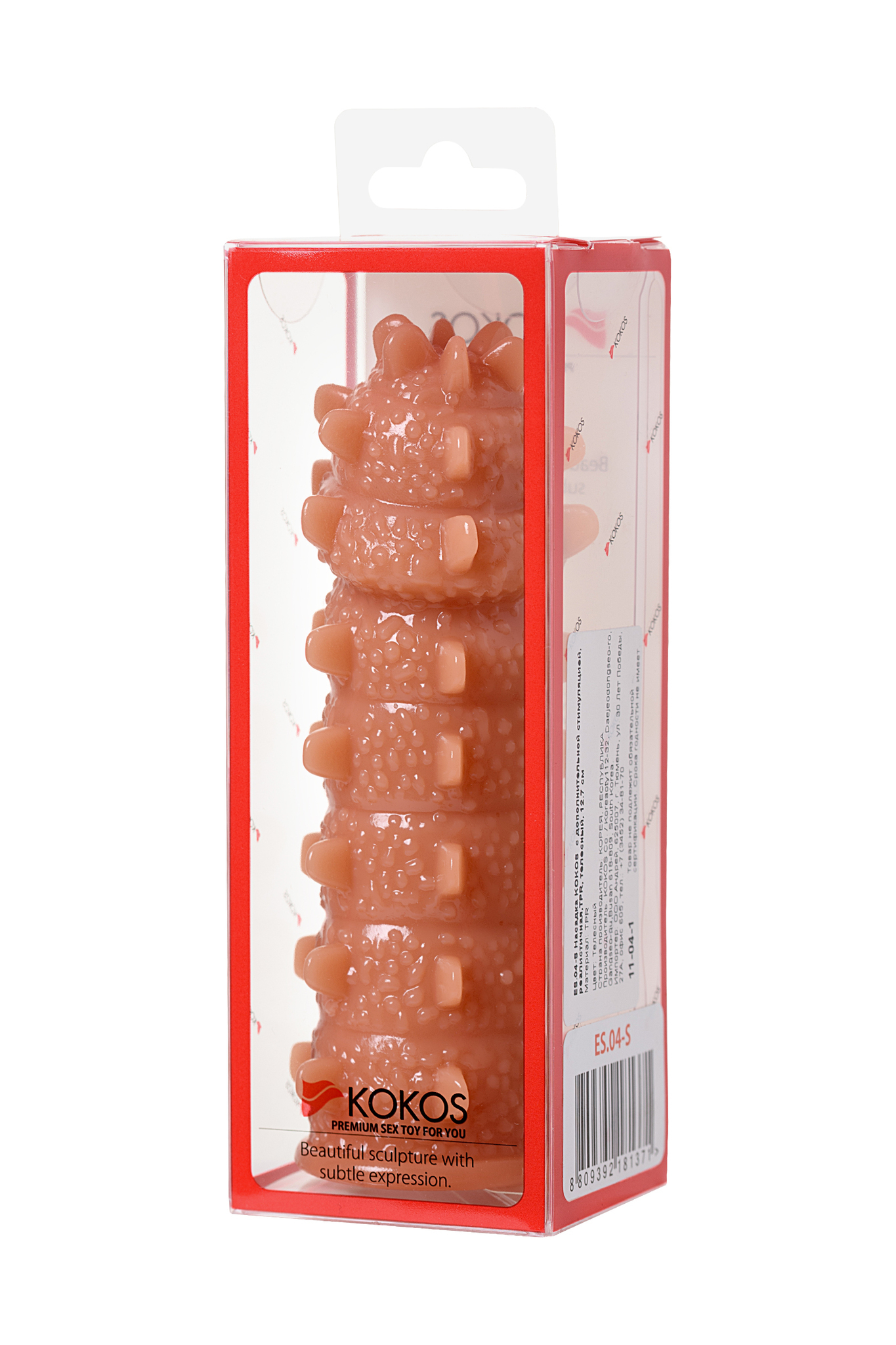 Насадка Kokos с рельефной стимуляцией, телесный цвет, 12,7 см, киберкожа, для партнеров и вибраторов
