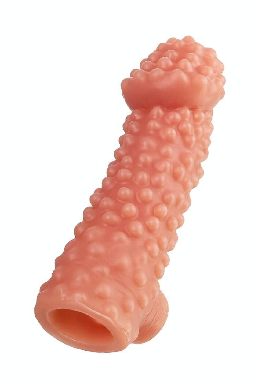 Насадка легко надевается, как презерватив, и подходит как для мужчин, так и для женщин. Она не только увеличивает длину и диаметр, но и снижает чувствительность, что позволяет продлить половой акт и сделать его более насыщенным. Специальное круглое отверстие у основания надежно фиксирует насадку, обеспечивая комфортное использование.
