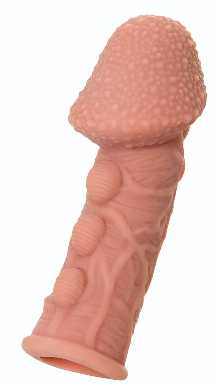 Насадка удлиняющая с текстурой «пузырьки и венки», TPE, телесный цвет, 14,7 см, диаметр 4,3 см