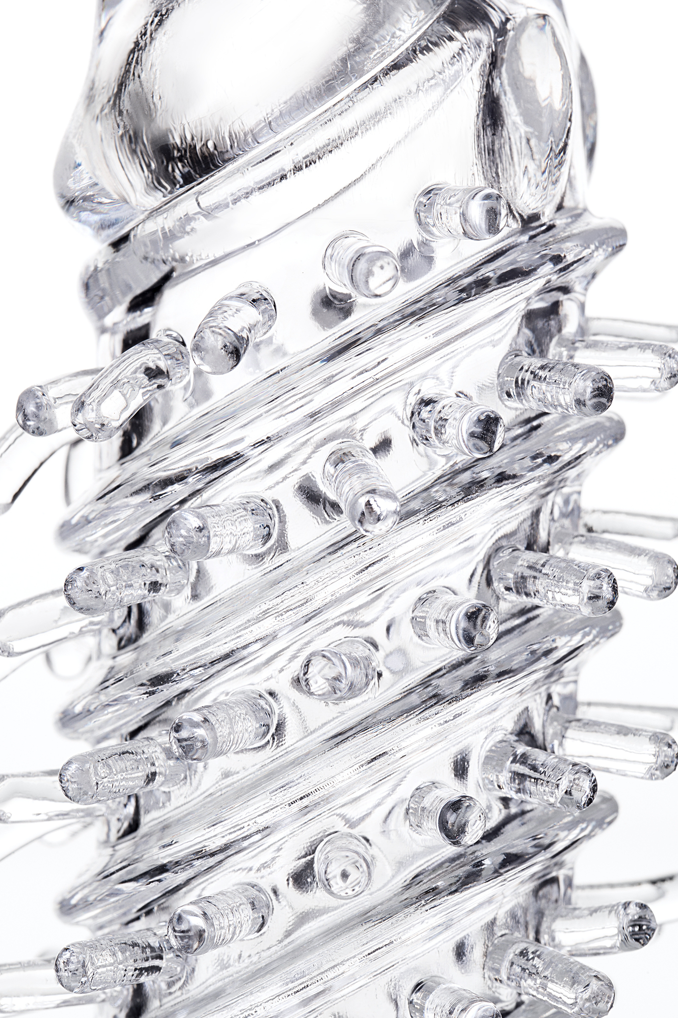 Насадка имеет прозрачный цвет и текстурированную поверхность, что добавляет тактильные ощущения. Она водонепроницаема, что позволяет использовать её в ванной или душе. Размеры: длина 13,4 см, что делает её удобной для хранения и использования. Не упустите возможность сделать вашу интимную жизнь более насыщенной и увлекательной!