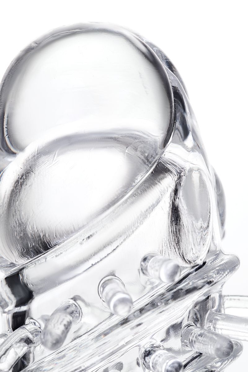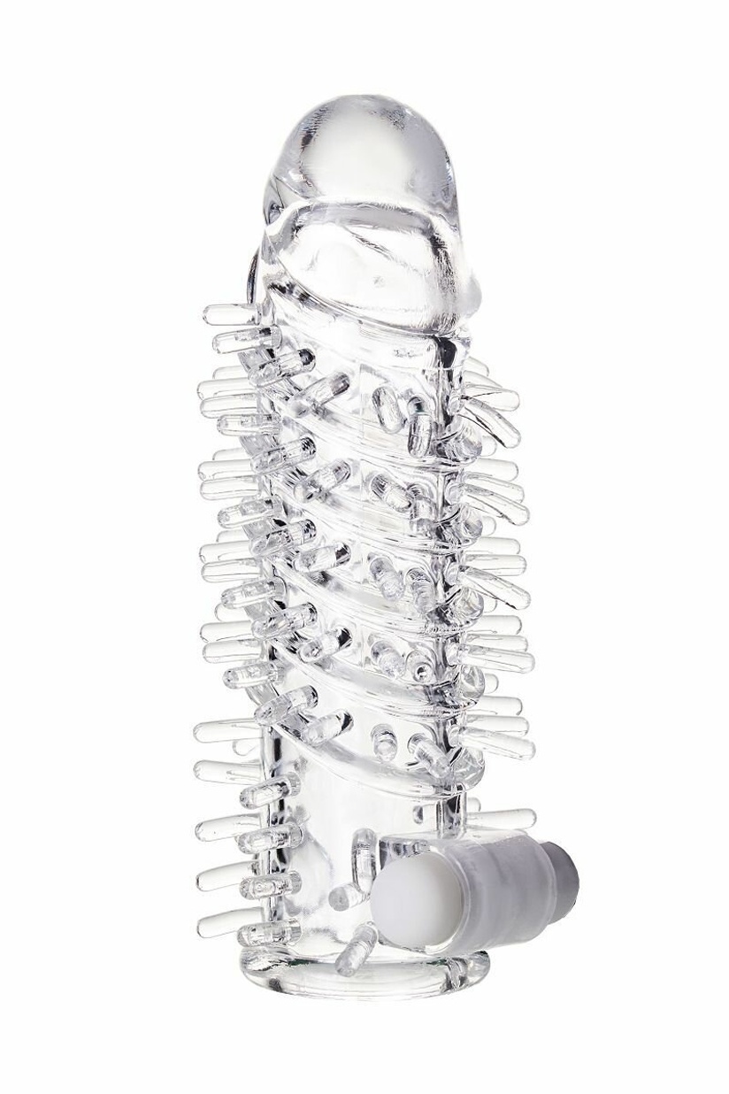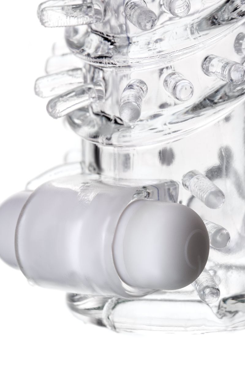 Насадка на пенис «TOYFA» с вибропулей, шипами, TPR, 13,4 см, прозрачный