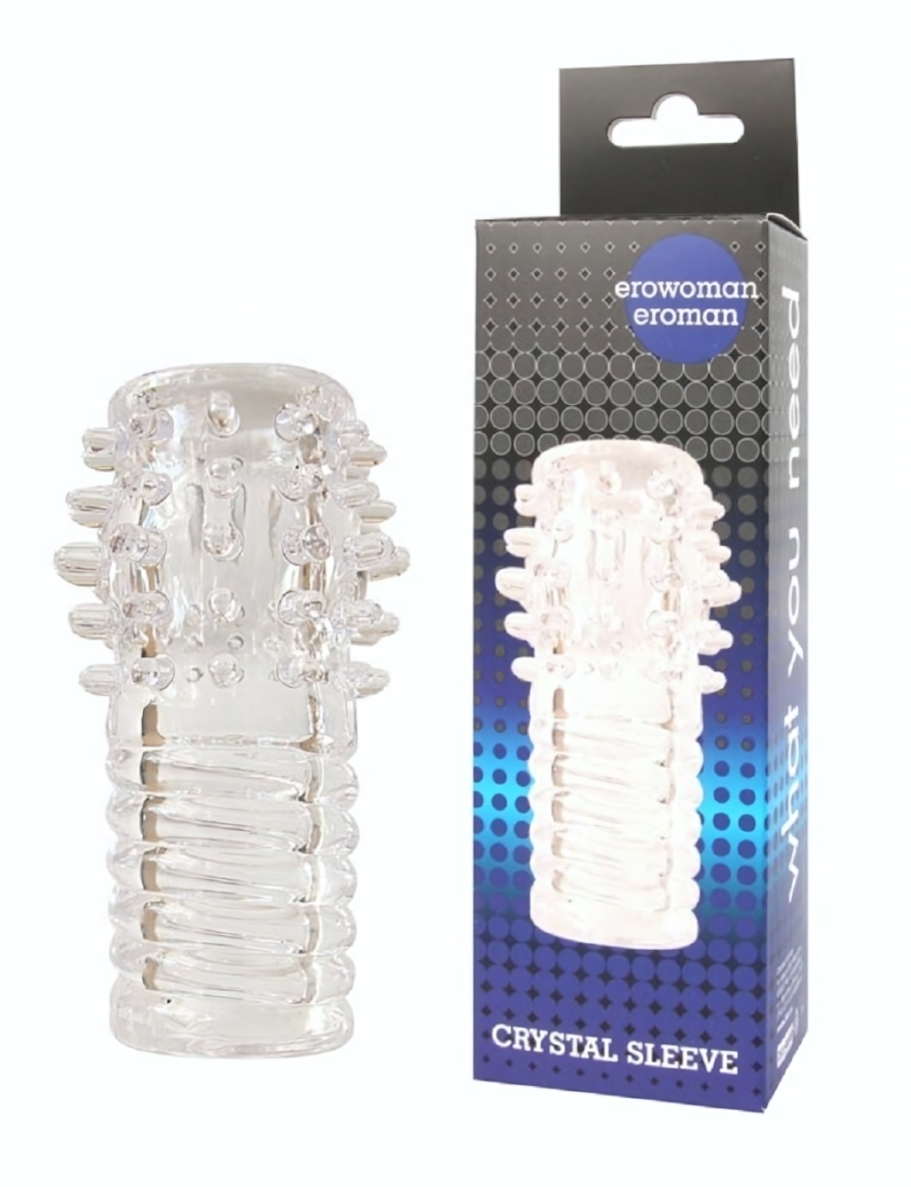 Насадка для стимуляции «Crystal Sleeve» с рельефными шипами, прозрачная, 10×4 см, TPE