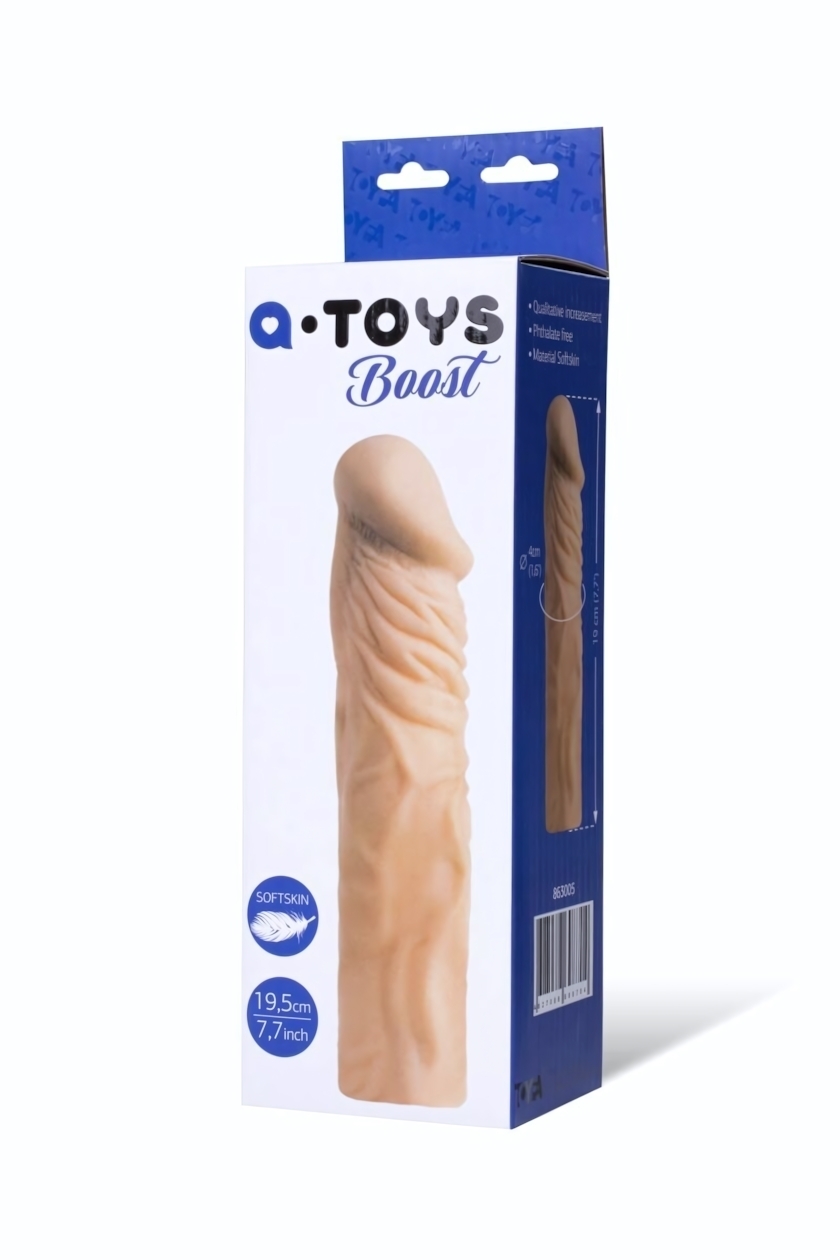 Длина насадки составляет 19 см, а диаметр — 4 см, что делает её подходящей для большинства пользователей. Цвет — телесный, что добавляет реалистичности. Насадка не имеет функции вибрации, что позволяет сосредоточиться на естественных ощущениях. Изготовлена в Китае под брендом A-Toys, она станет отличным дополнением к вашей коллекции интимных аксессуаров.
