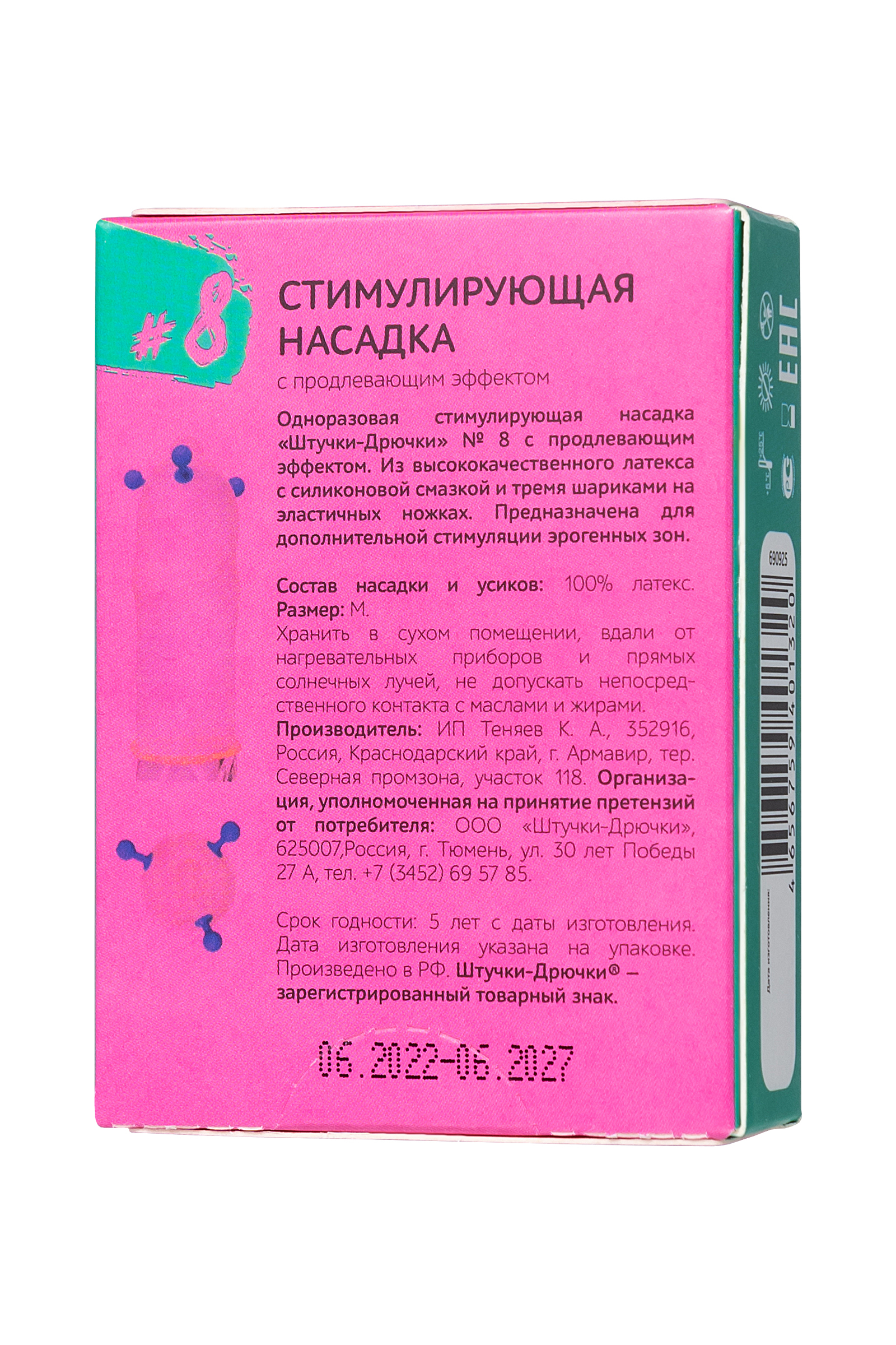 Добавьте разнообразия и ярких ощущений в интимную жизнь с этой стимулирующей насадкой №8. Мягкий латекс в сочетании с тремя эластичными шариками обеспечивает дополнительную стимуляцию партнёрши, а встроенная смазка с пролонгирующим эффектом помогает продлить удовольствие и раскрыть новые грани близости.