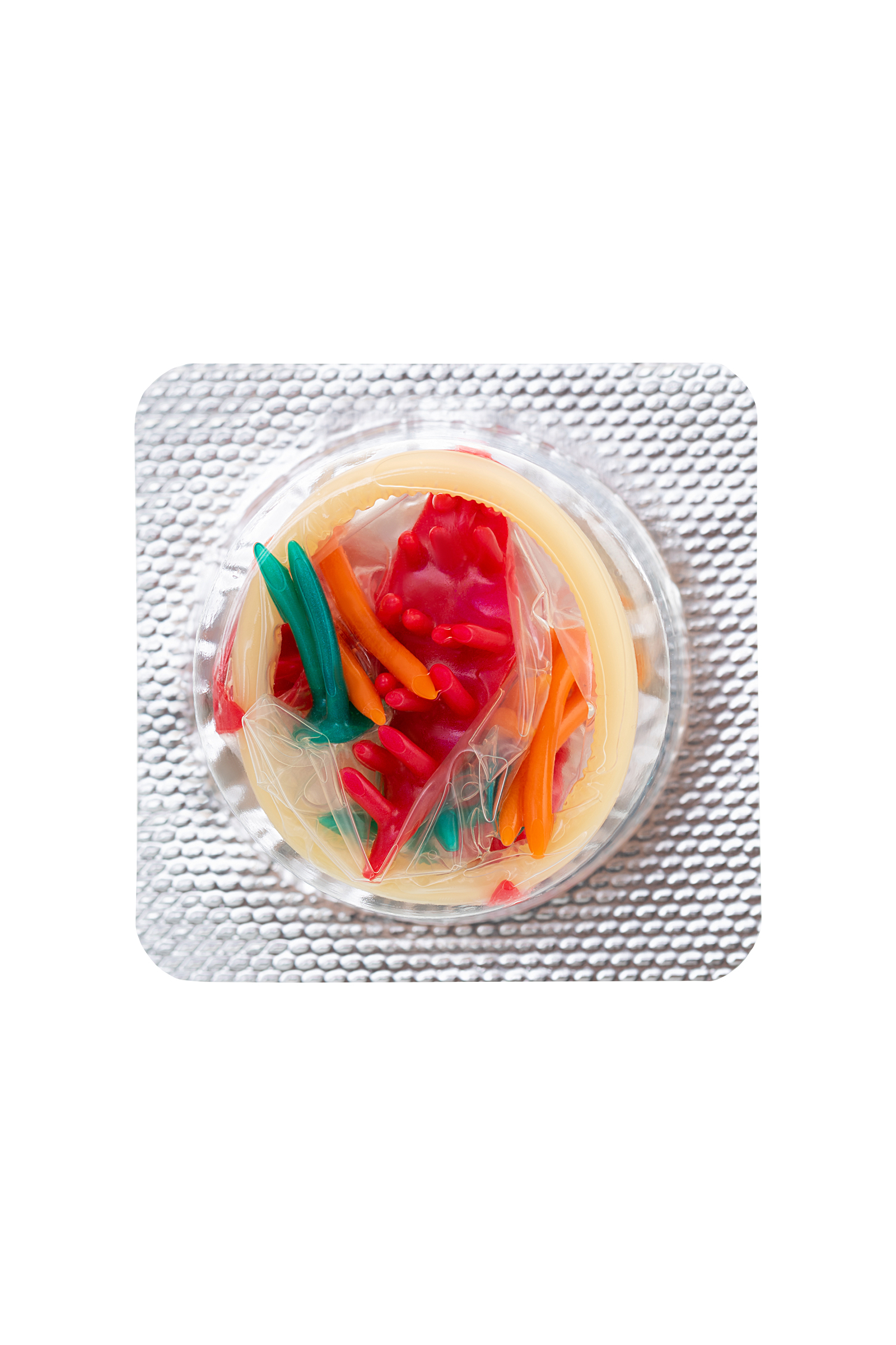 - Разноцветные рельефные элементы обеспечивают дополнительную стимуляцию.