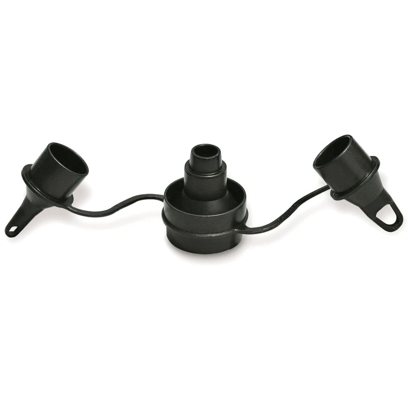 - Универсальность — в комплекте три адаптера-переходника разного диаметра для совместимости с большинством клапанов надувных изделий.