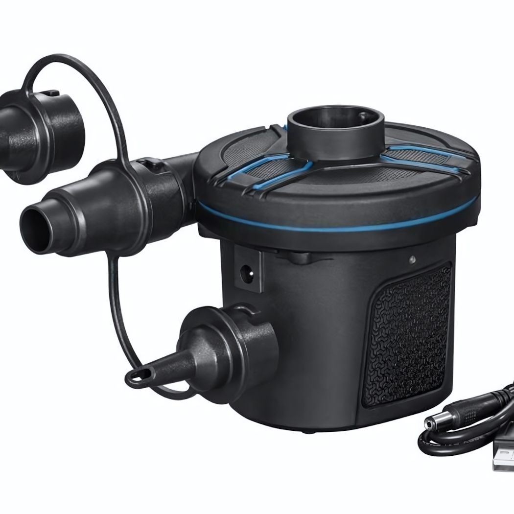 Насос выполнен из прочного пластика и имеет стильный черный цвет с синими вставками. Его размеры и форма обеспечивают удобство в использовании и хранении. Благодаря большой воздушной камере, насос быстро надувает и сдувает почти все надувные изделия, что делает его незаменимым помощником для активного отдыха и путешествий.