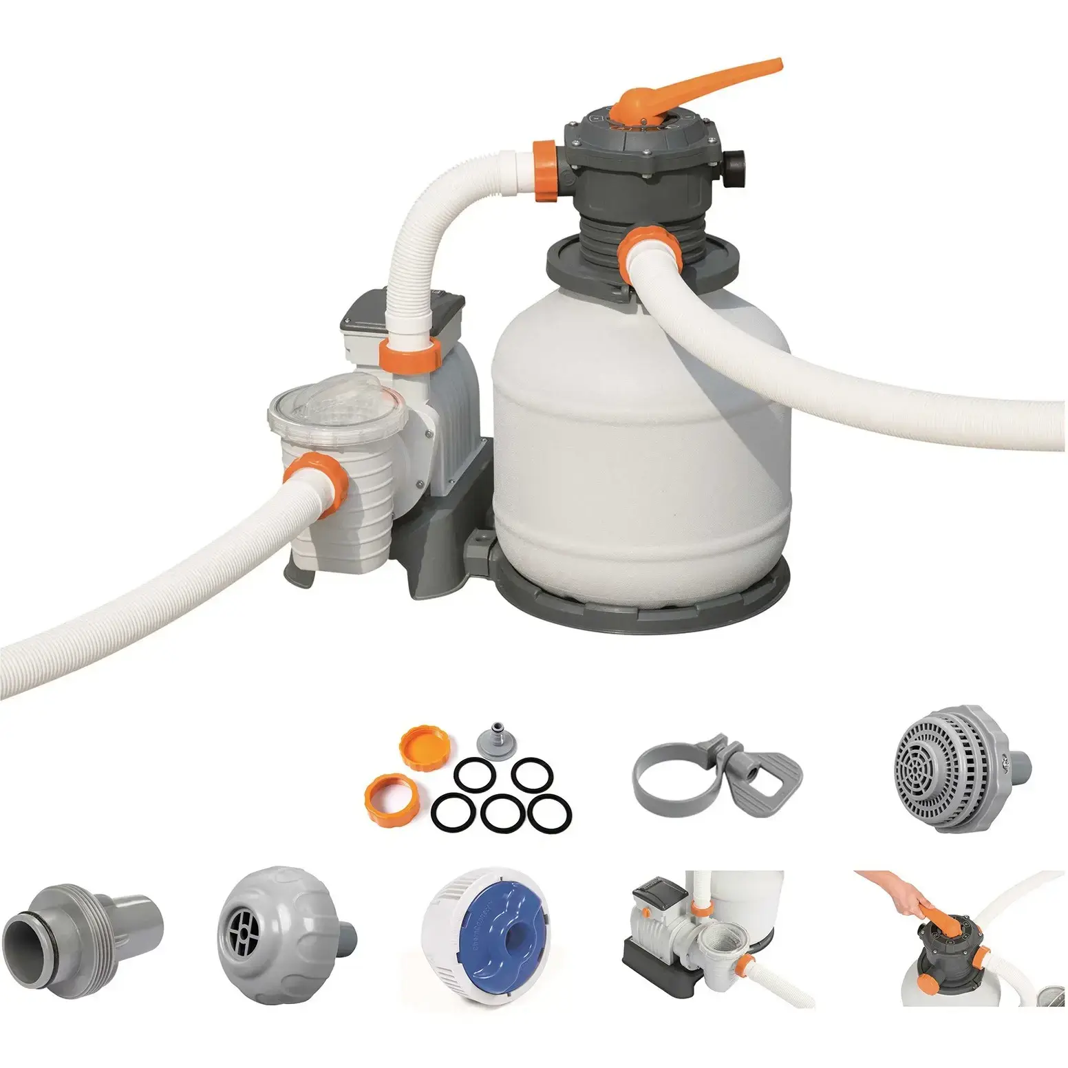 Песочный фильтр Bestway модели 58499 – это надежное решение для очистки воды в плавательных бассейнах объемом от 15 до 35 кубических метров. С его помощью вы сможете наслаждаться кристально чистой водой, не беспокоясь о механических примесях. Этот насос-фильтр обеспечивает высокую степень очистки, превосходя традиционные насосы с бумажными фильтрами.