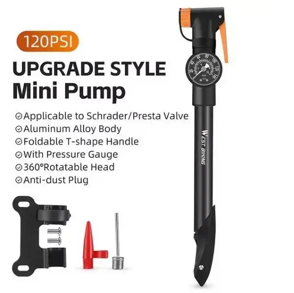 С нашим насосом West Biking вы забудете о проблемах с накачиванием колес на прогулках и в поездках. Манометр высокой точности гарантирует правильное давление, а эргономичная конструкция делает процесс максимально комфортным.