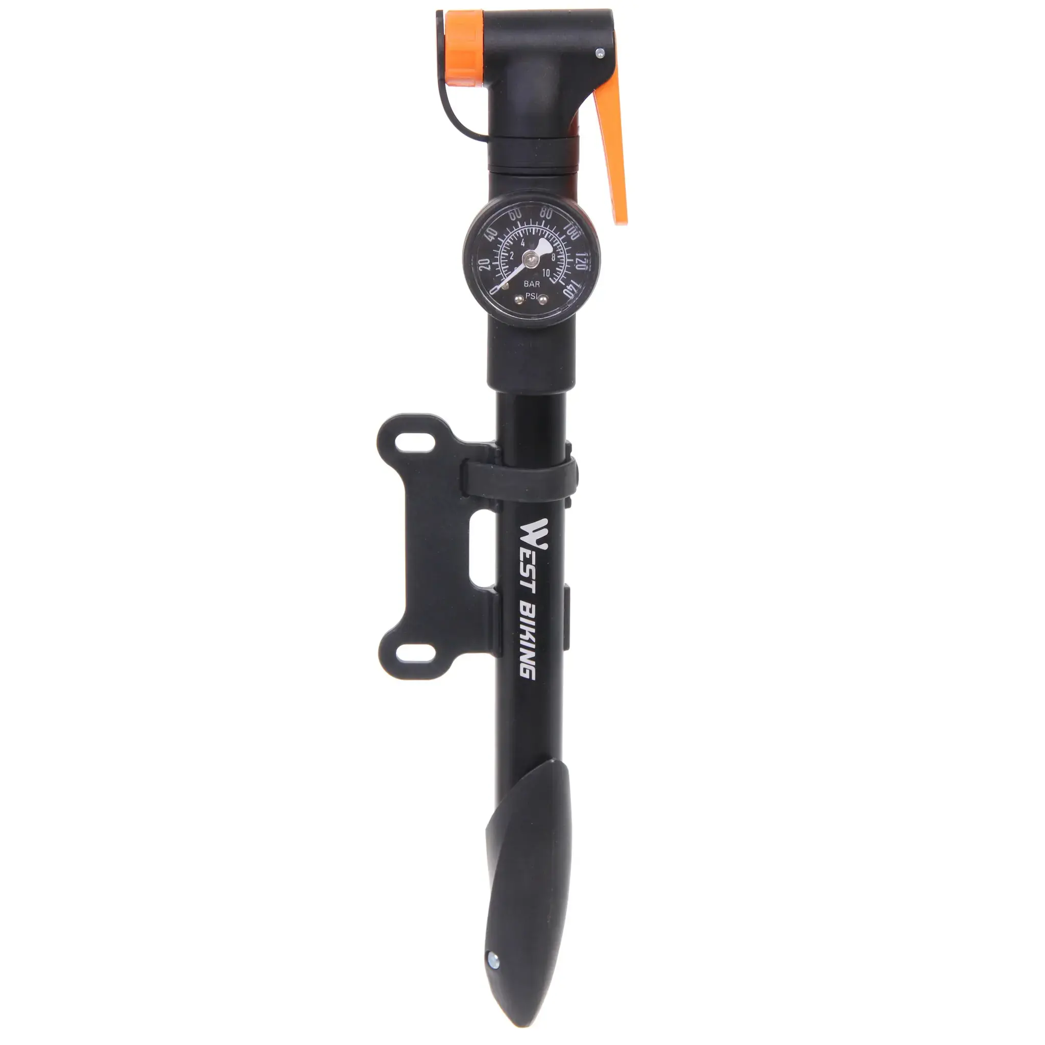 Насос велосипедный West Biking, алюминий, черный/оранжевый, до 120 PSI