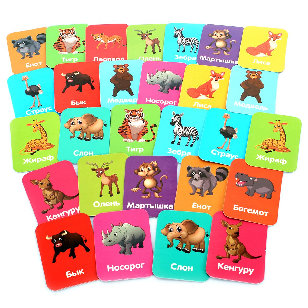 - 30 карточек с животными: Разнообразие изображений животных делает игру интересной и познавательной.