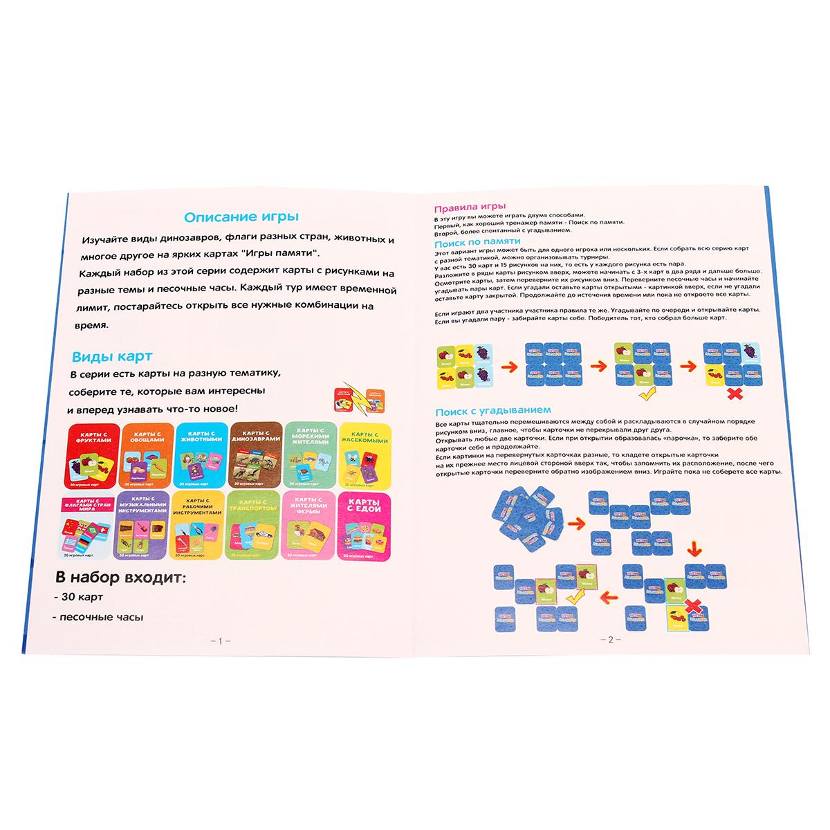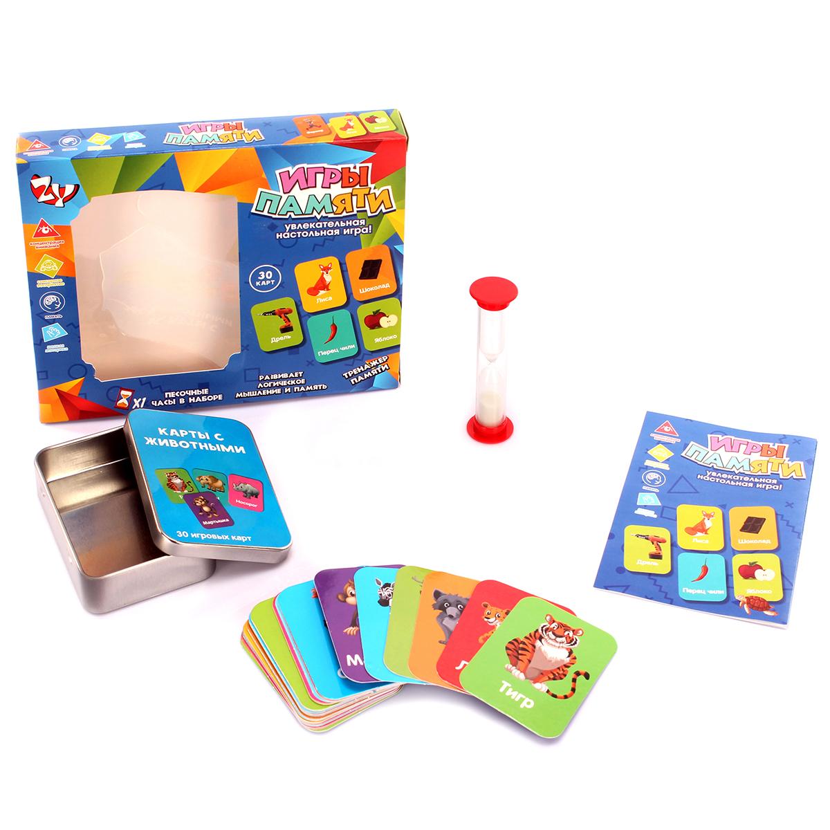 Игра настольная "Игры памяти" с картами животных, 30 карт + песочные часы, развивает логику и внимание