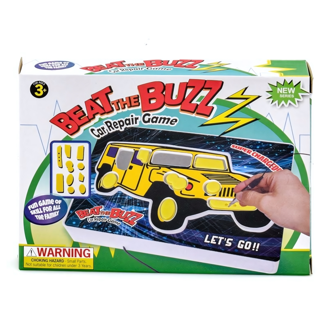Представляем настольную игру 'Beat the Buzz' с подзаголовком 'Car Repair Game' — идеальный способ провести время весело и с пользой. Основная задача: аккуратно достать все пластиковые детали автомобиля, не касаясь металлических частей пинцетом, чтобы избежать жужжания.