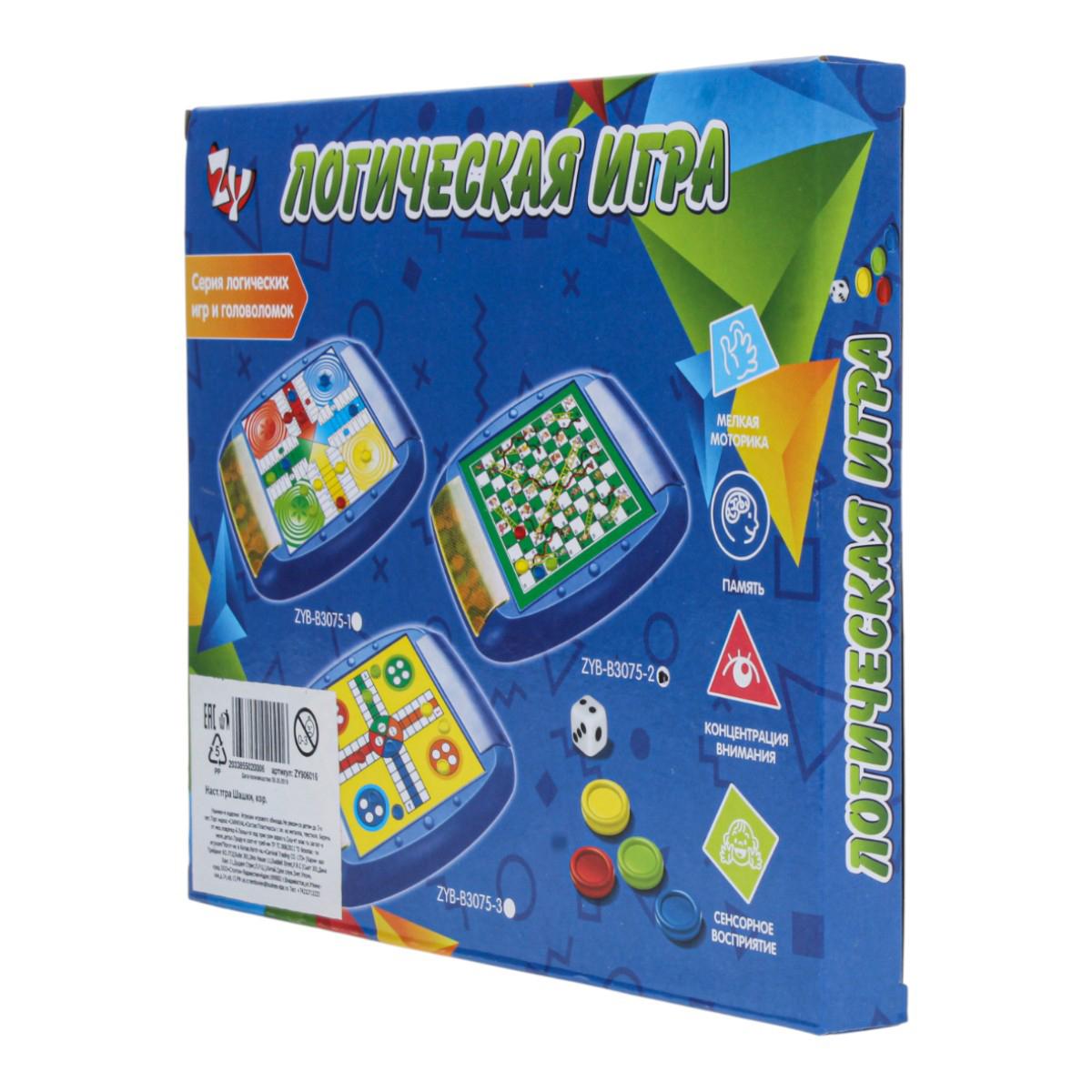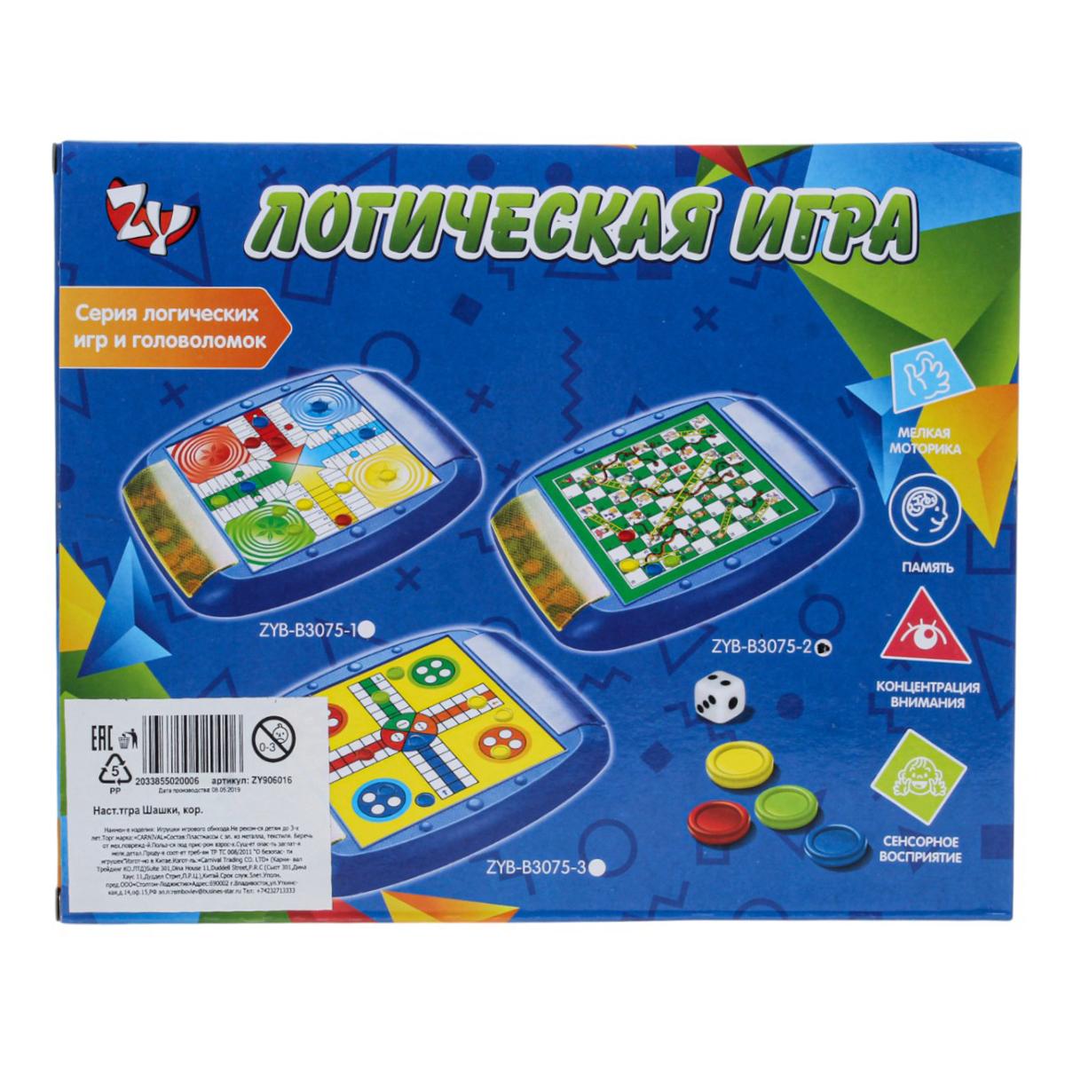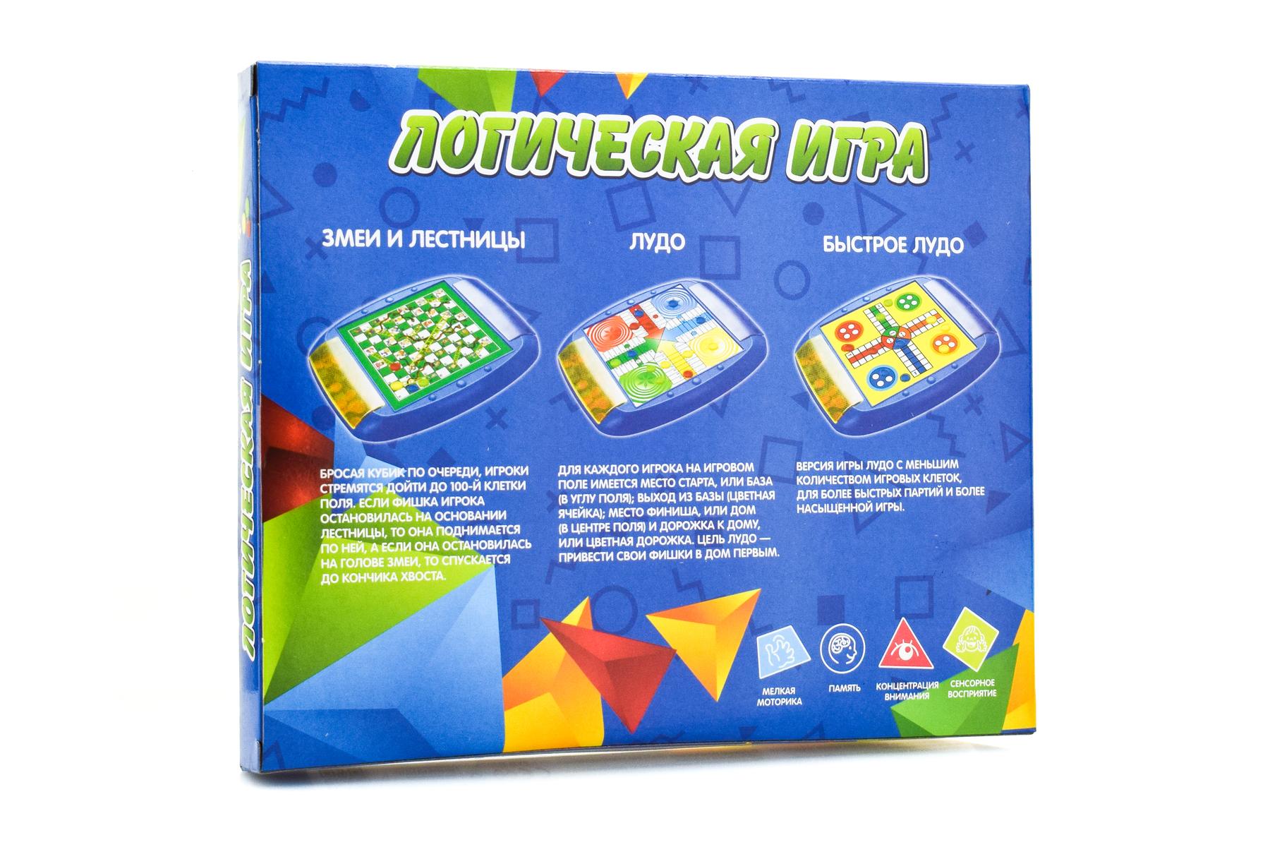 Настольная игра 3в1: Шашки, Лудо, Змеи и лестницы, развивающая логика, пластик