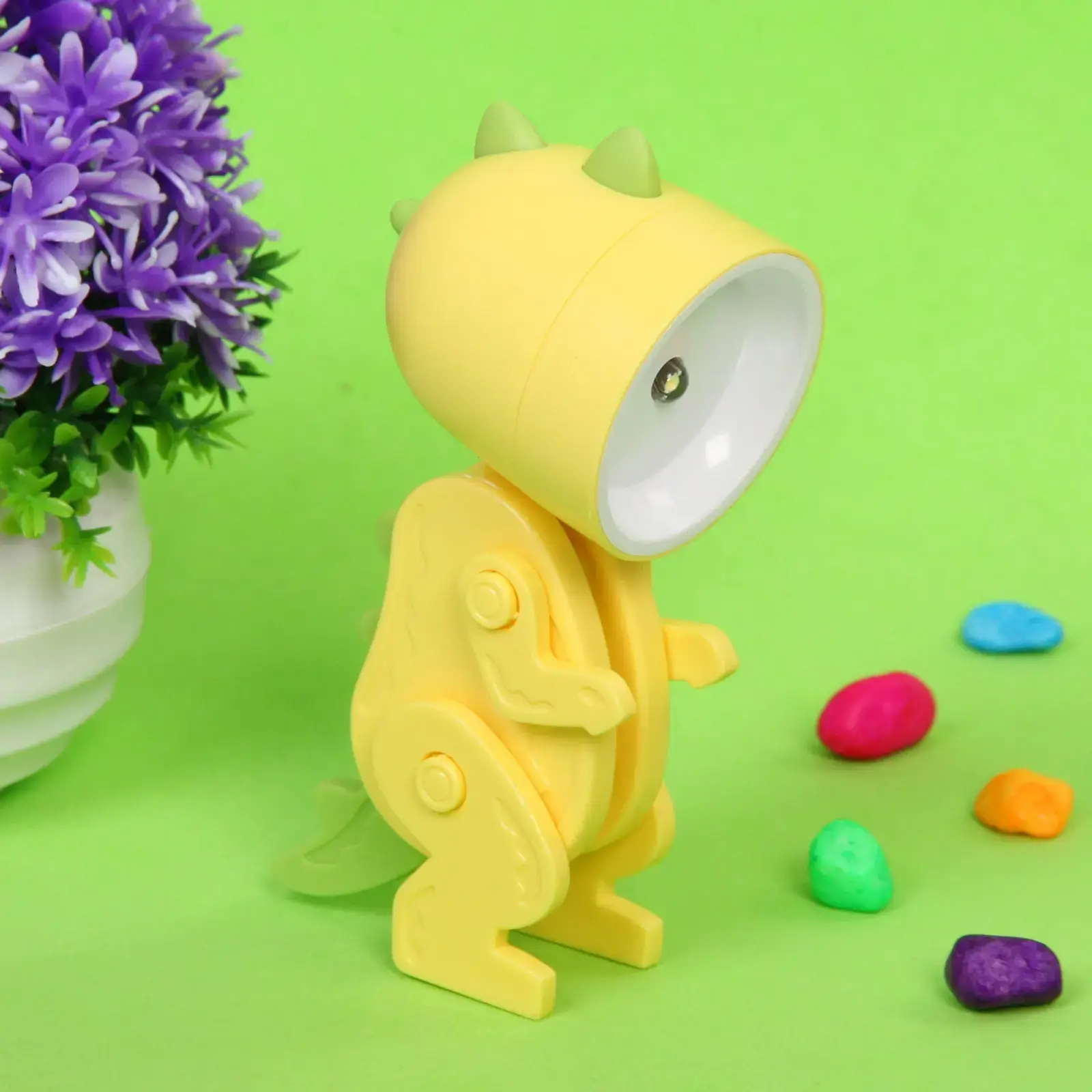 Создайте уютную атмосферу в детской комнате с настольной лампой «Sweet - Динозаврик». Этот яркий светильник в форме динозавра не только освещает пространство, но и становится стильным элементом декора. Его жёлтый цвет с зелёными акцентами привлекает внимание и радует глаз, а компактные размеры 5,1х3,6х9,8 см позволяют разместить лампу на столе или полке.