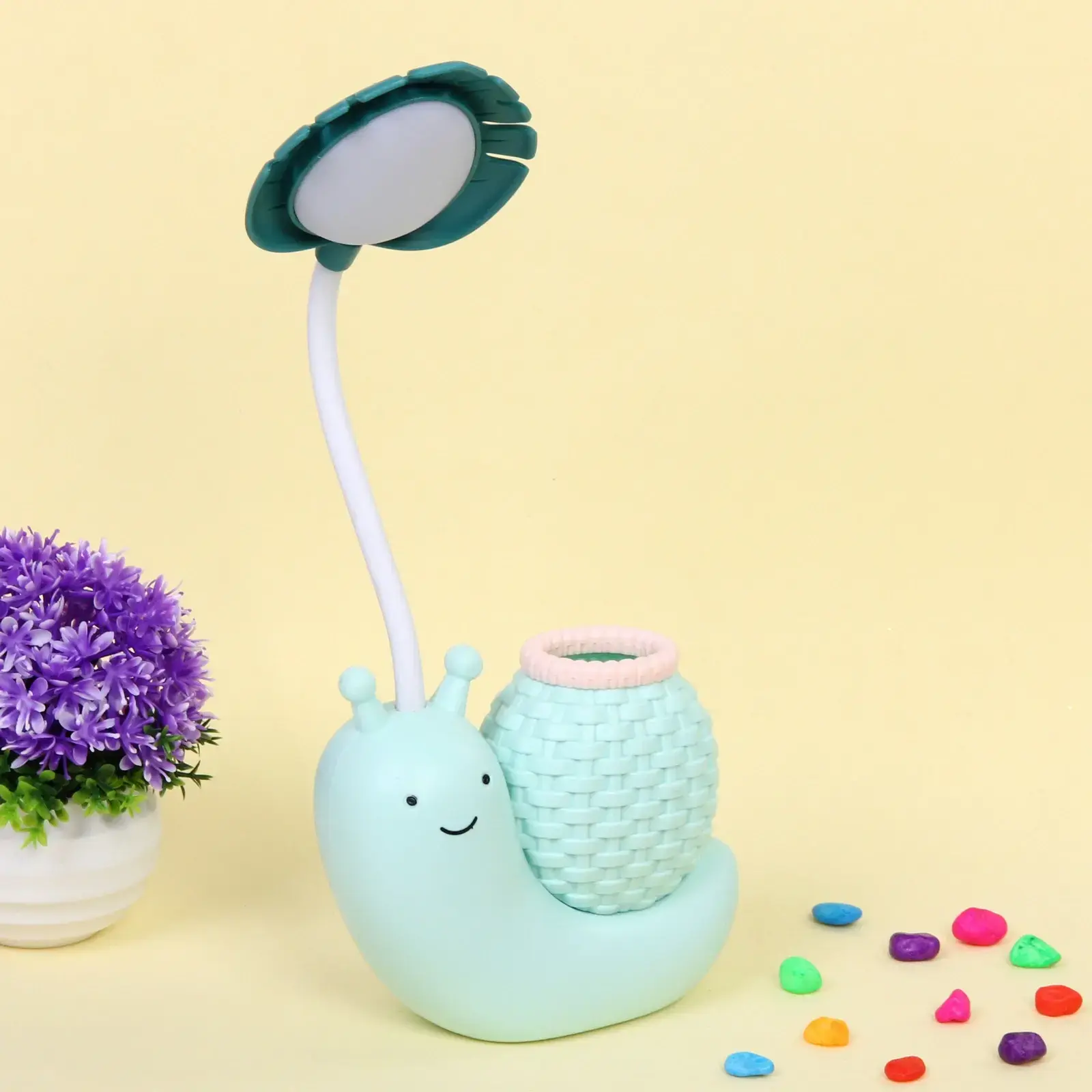 Создайте уют и атмосферу в вашем доме с настольной лампой «Sweet - Улитка». Этот оригинальный светильник не только освещает пространство, но и служит стильным элементом декора. Его игривый дизайн в форме улитки с улыбающимся лицом и цветочным абажуром добавит ярких красок в любое помещение, будь то детская комната или рабочий стол.